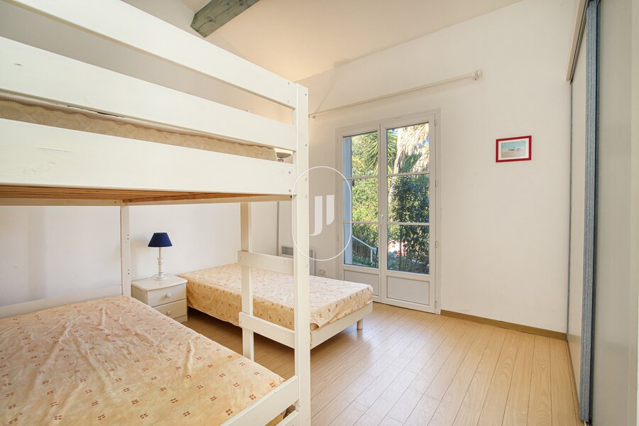 The garden level contains a cellar, a utility room, a bathroom/toilet and a double garage in addition to the outdoor parking spaces. The garden is also sure to surprise you, with a total area of 1000 sqm planted with flowers and trees. There is a pétanque court where you can cool off in the shade of trees and plants characteristic of the region. The villa is in excellent condition.