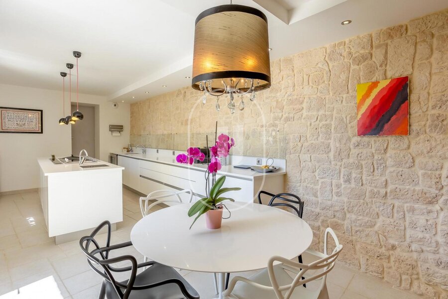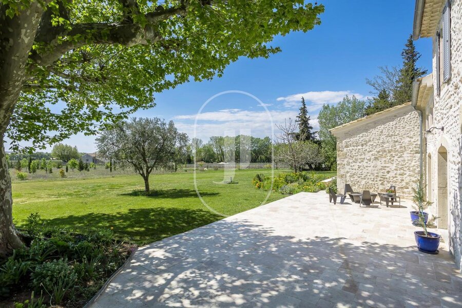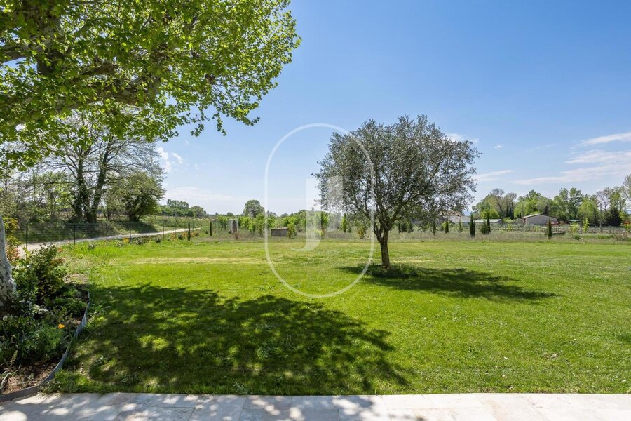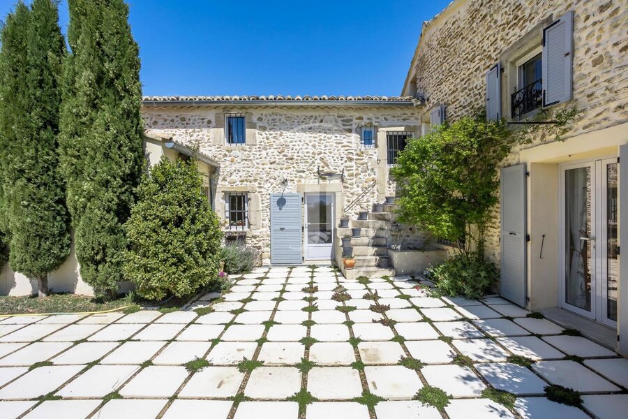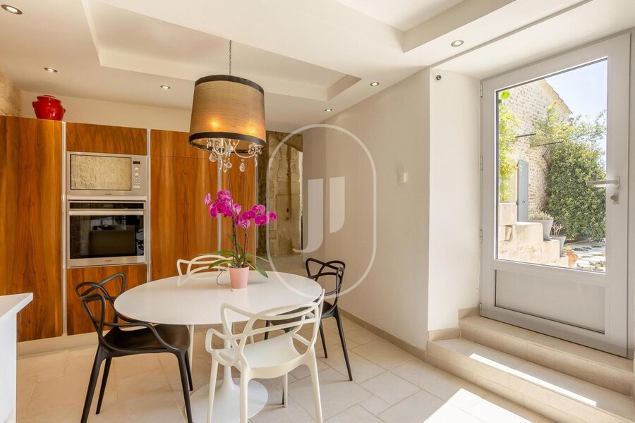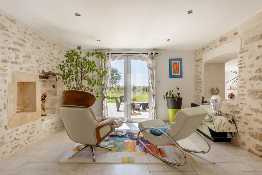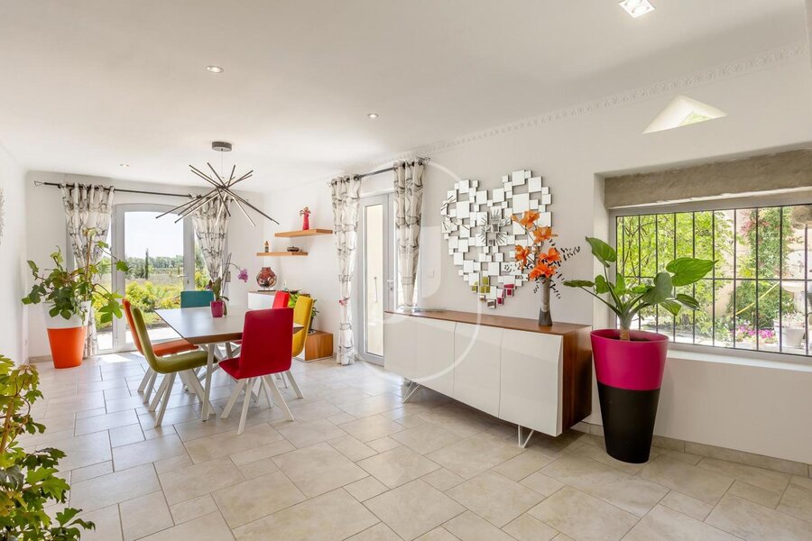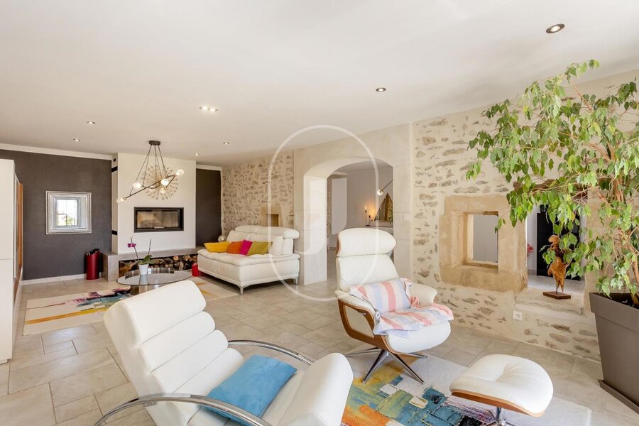 House for sale in the Vaucluse, fully restored with great care and located in a peaceful environment in Provence, near the charming village of Visan. This quality property offers 295m² of living space on 11,000m² of land. The contemporary interior, with its high level of comfort and exceptional quality, is designed for relaxing moments with family or friends. As soon as you arrive, you'll be seduced by the fireplace in the living room, as well as by the bright dining room.