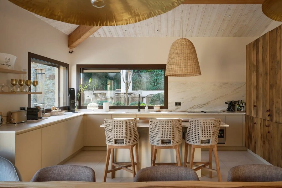 The villa is equipped with modern features including air conditioning, home automation, video surveillance and a SONOS sound system indoors and outdoors.