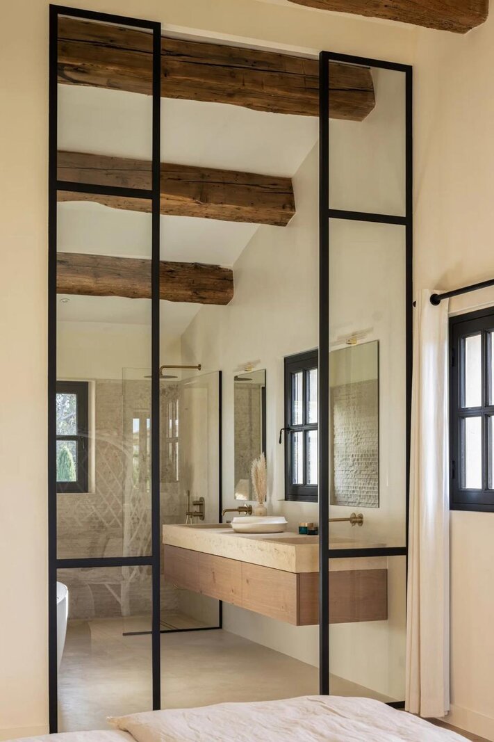 De inrichting is verfijnd en harmonieus, de gebruikte materialen zijn van kwaliteit en lokaal (natuursteen, oude deuren enz...).