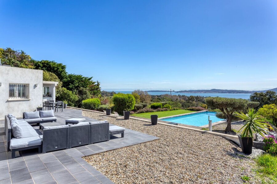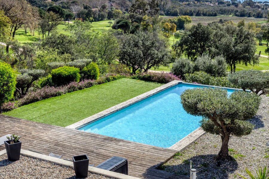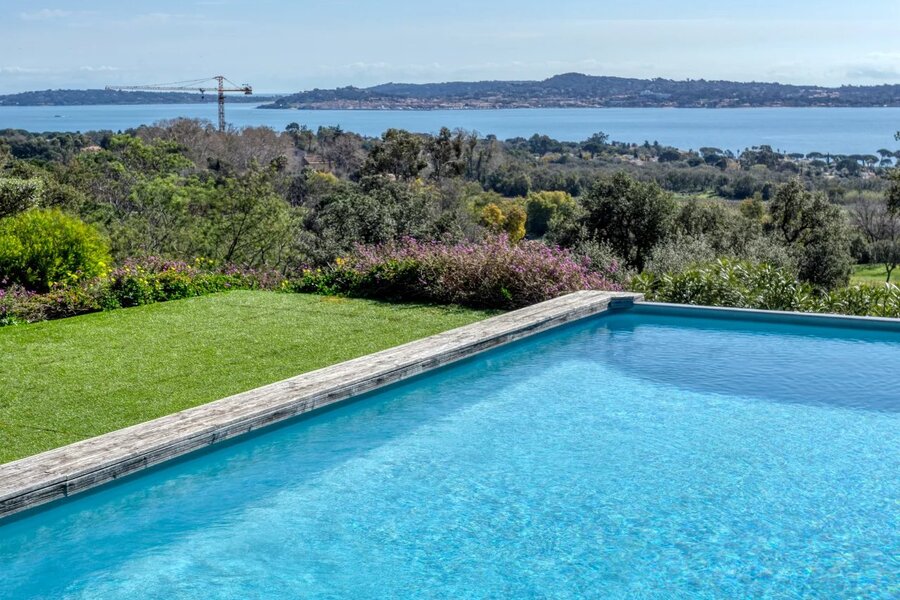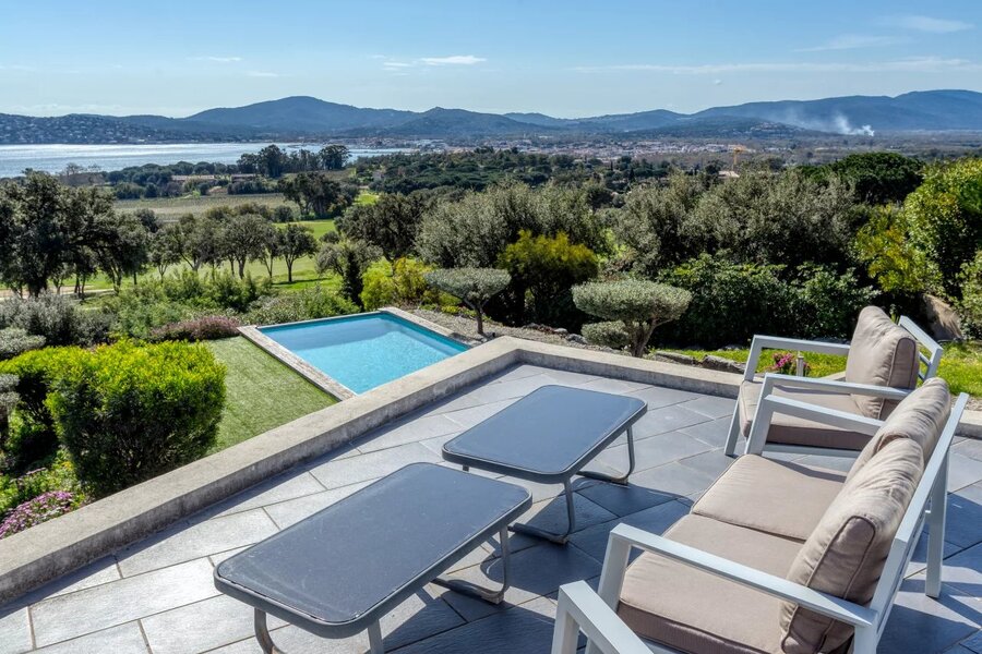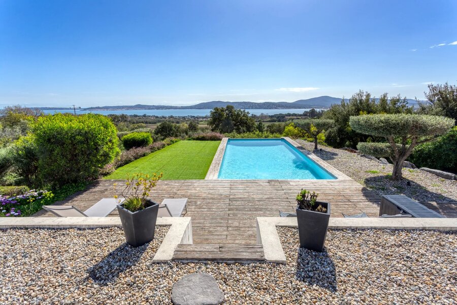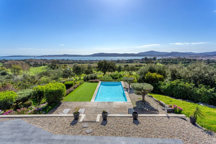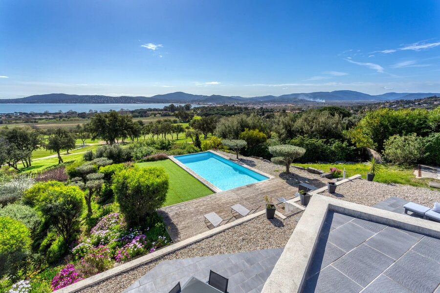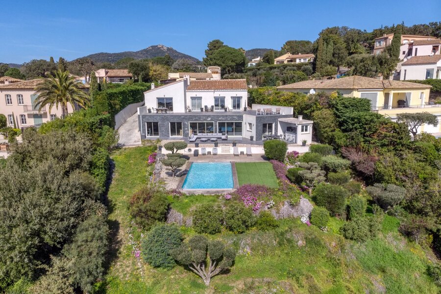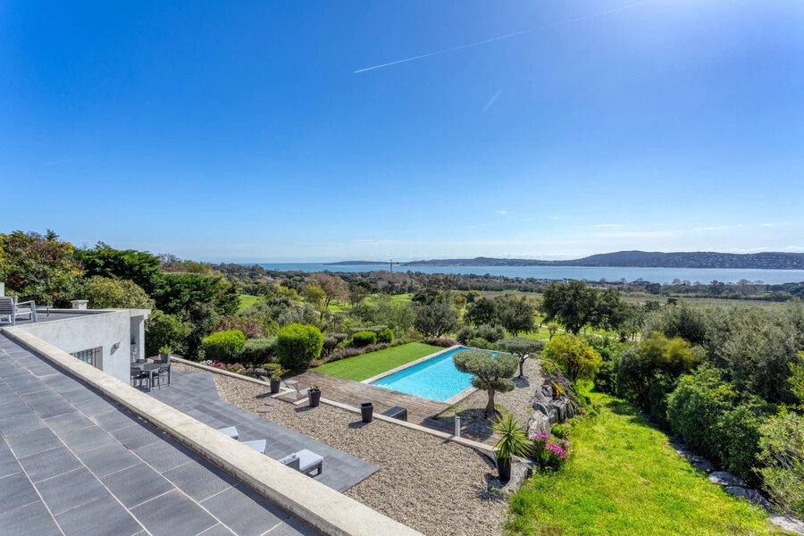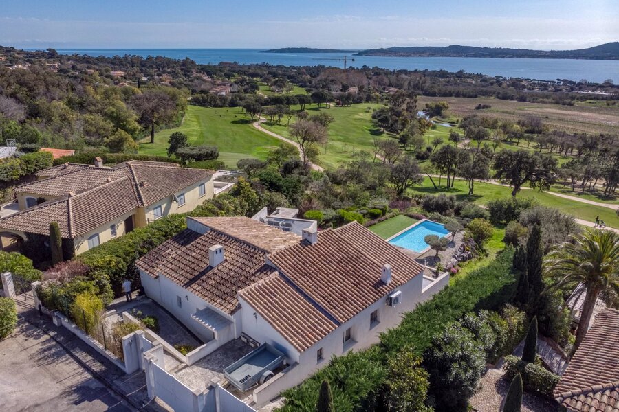 Nestled in a highly sought-after area of GRIMAUD, this luxurious 260m² villa gracefully sprawls across a 1685m² plot, offering a panoramic view that will take your breath away over the Gulf of SAINT TROPEZ. In addition to its sea view, it boasts a unique perspective overlooking the prestigious BEAUVALLON golf course and the surrounding vineyards.