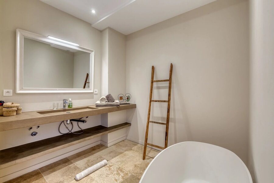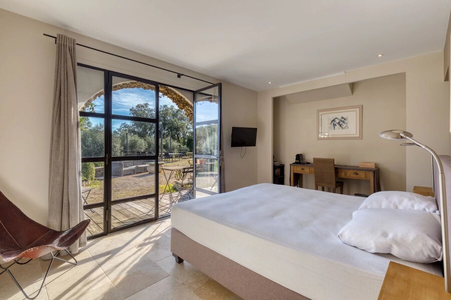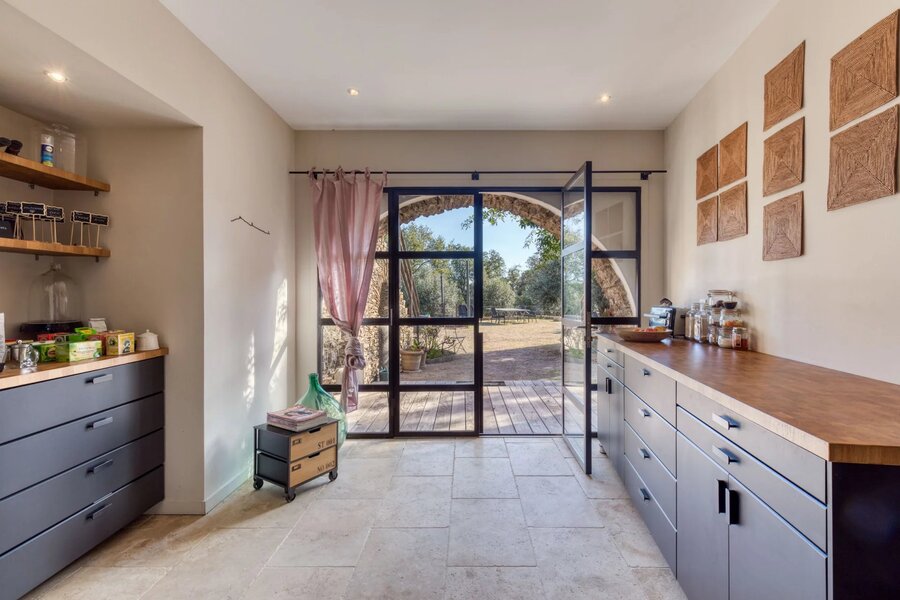 The main building, fully renovated and modernized between 2015 and 2018, combines timeless elegance with modern luxury. Upon entering, a spacious 70 m² living room unfolds, perfect for relaxation and entertaining. The open American-style kitchen, equipped with high-end professional appliances, allows for gourmet cooking in a luxurious setting. The main house features eight large bedrooms, each with a private bathroom, as well as a full wellness area with an exclusive spa that includes a massage room, hammam, and sauna. A versatile 70 m² bonus room can be set up as a conference room, gym, or home cinema, while a refrigerated wine cellar with a tasting area is a paradise for wine enthusiasts. Comfort is paramount, with underfloor heating and cooling throughout the property, along with air conditioning in selected areas.
