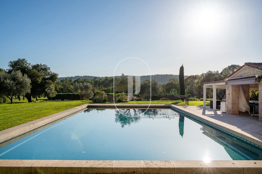 A separate house, currently occupied by the caretaker, also benefits from this work. This Provençal bastide house is an oasis of charm and luxury where every detail is designed to provide a unique living environment. A viewing is required to fully appreciate the beauty and power of this exceptional property.