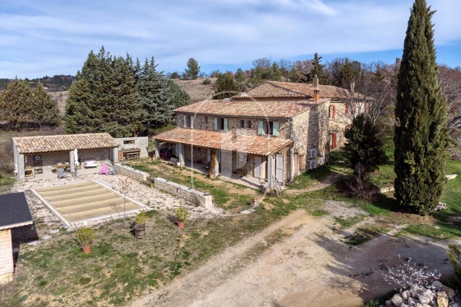 This old building, set in almost 2 hectares of land, is in a peaceful location with panoramic views over the surrounding hills and the Luberon.