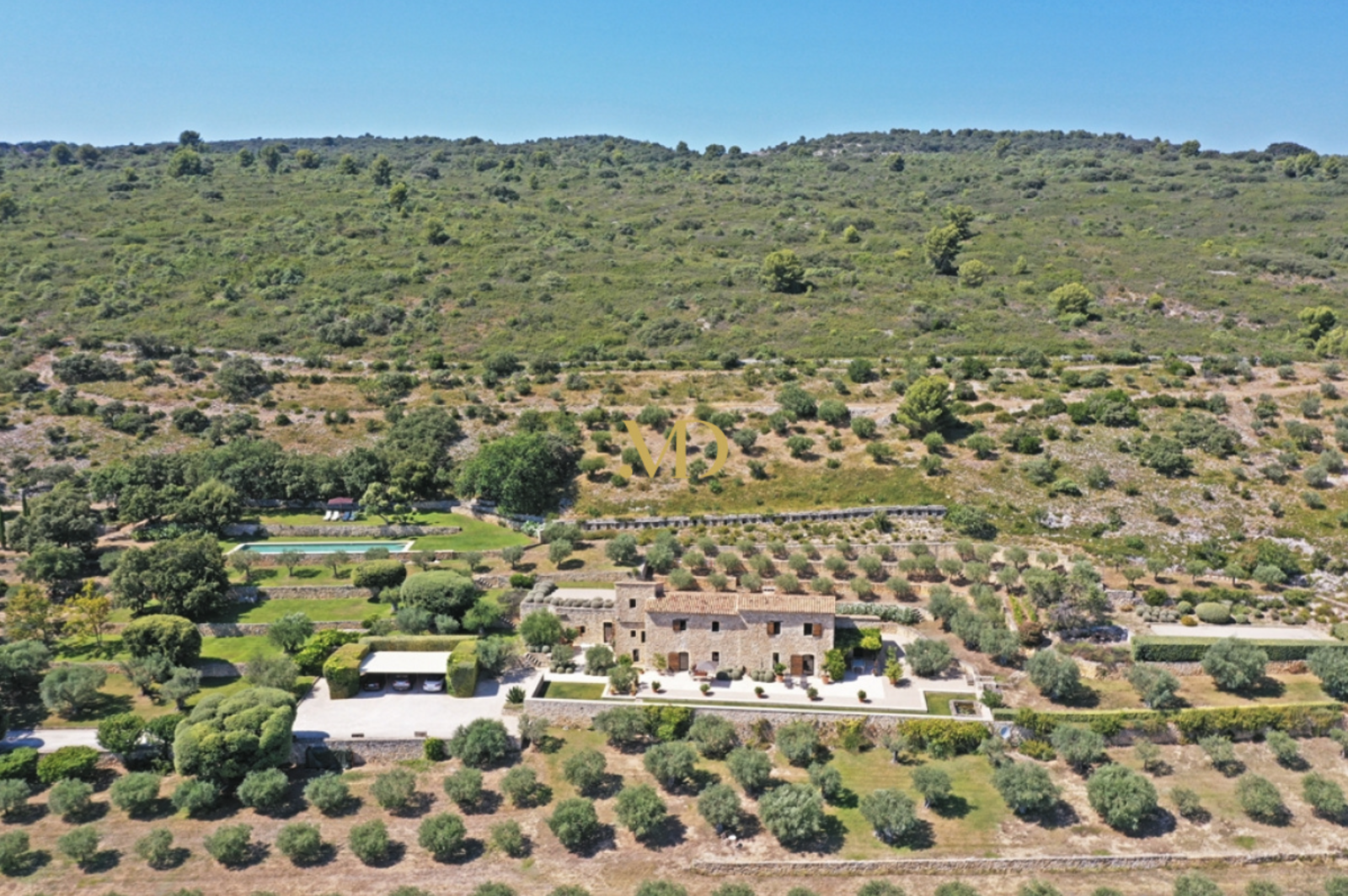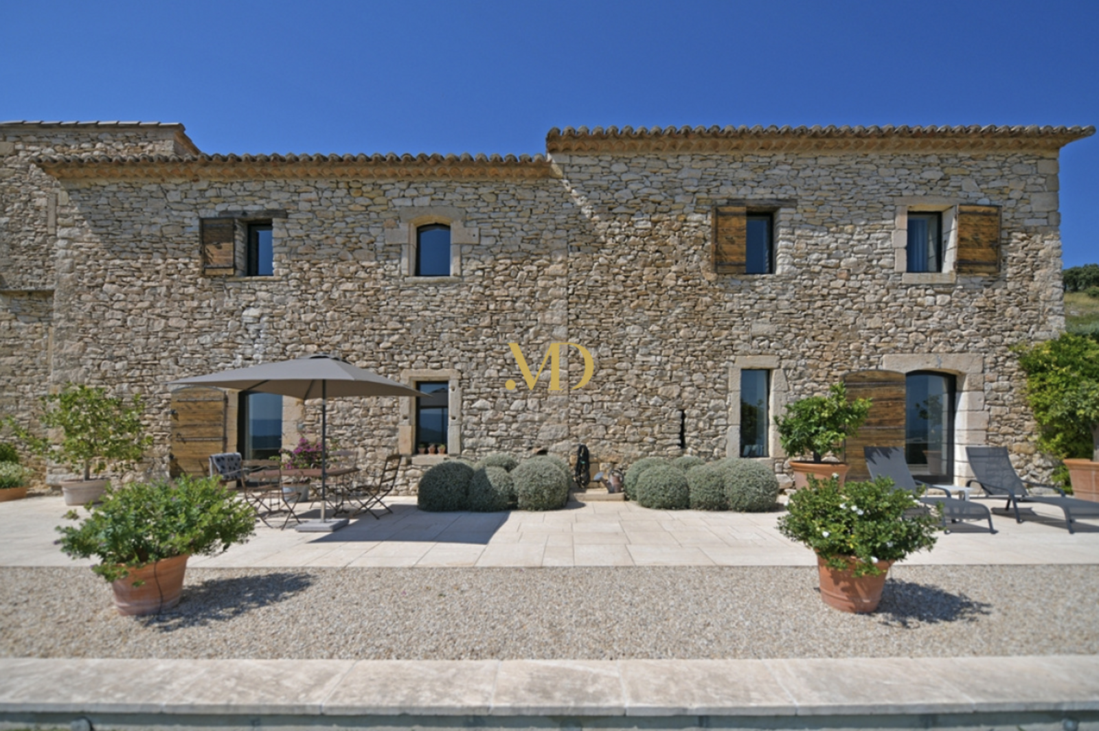 Genesteld in het hart van een spectaculaire natuurlijke omgeving geniet deze voormalige stenen boerderij van een absoluut uitzonderlijke ligging, met uitzicht over de vallei van de Luberon, op slechts 1,2 km van het centrum van Gordes. Gelegen op meer dan zes hectare grond combineert het domein Provençaalse authenticiteit met een doordachte, hedendaagse renovatie, in een elegante en resoluut moderne sfeer.