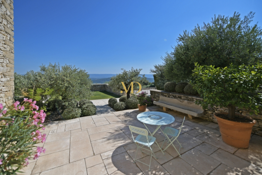 Bastide met panoramisch zicht en olijfgaar te Gordes