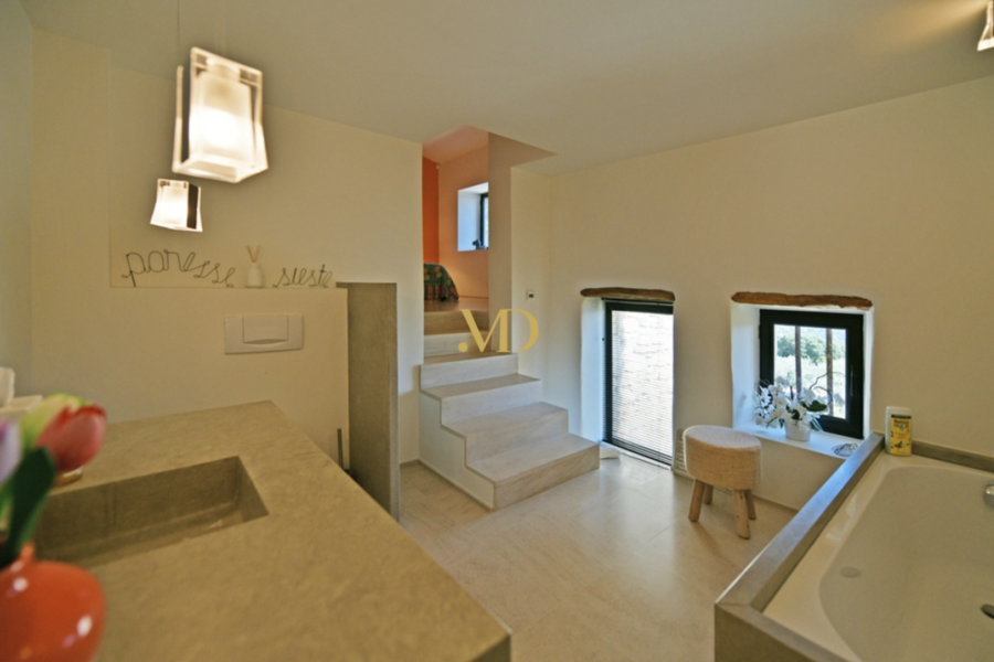De hoogwaardige renovatie werd uitgevoerd met zorgvuldig geselecteerde materialen. Het comfort wordt verzekerd door elektrische vloerverwarming, airconditioning in de slaapkamers, aluminium schrijnwerk met dubbele beglazing, horren en uitgebreide technische voorzieningen: stadswater, een diepe waterboring, een waterput, een septische put en bliksembeveiliging.