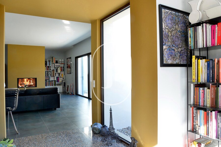 Technical spaces — laundry, storage and utility room — ensure everyday comfort. Two adjoining workshops with underfloor heating by heat pump offer further potential and could be connected to the main house.