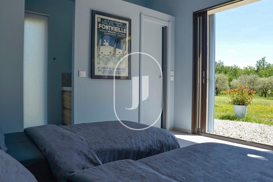 Nestled in a privileged setting amidst the countryside, in absolute peace yet close to the centre of Vaison-la-Romaine and a renowned village, this residence perfectly blends Provençal authenticity with refined modern design in a serene and intimate atmosphere.
