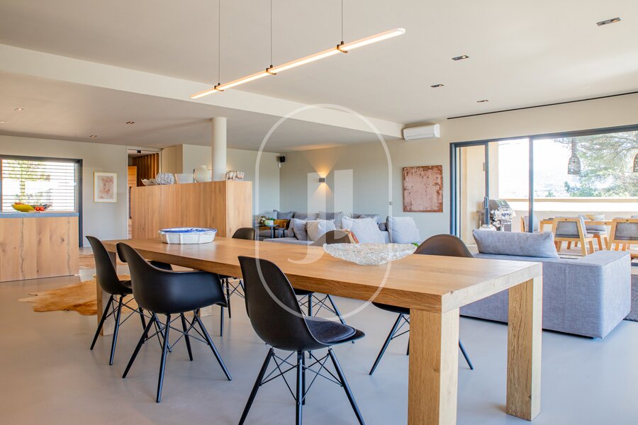 The ground floor, bathed in natural light through large picture windows, opens onto several terraces—sunlit or shaded—perfect for enjoying the stunning views.