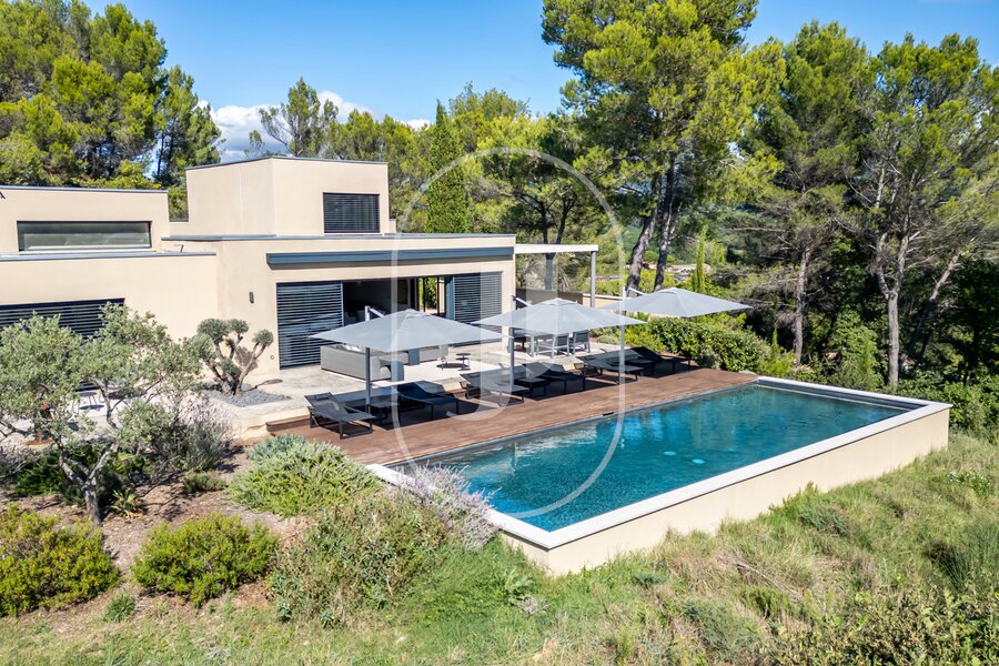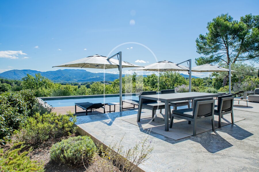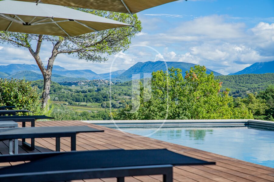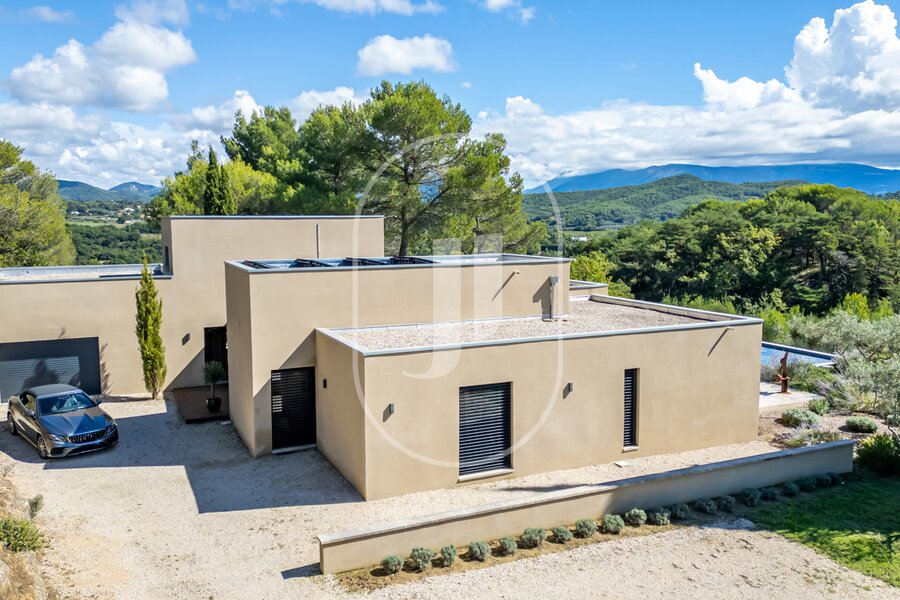 A truly exceptional contemporary home in a privileged location, offering a rare panoramic view over the countryside, vineyard and Mont Ventoux. Nestled at the heart of a 2.5-hectare estate forming a private hill, close to Vaison-la-Romaine, this property combines refined design, modern comfort, and Mediterranean charm.