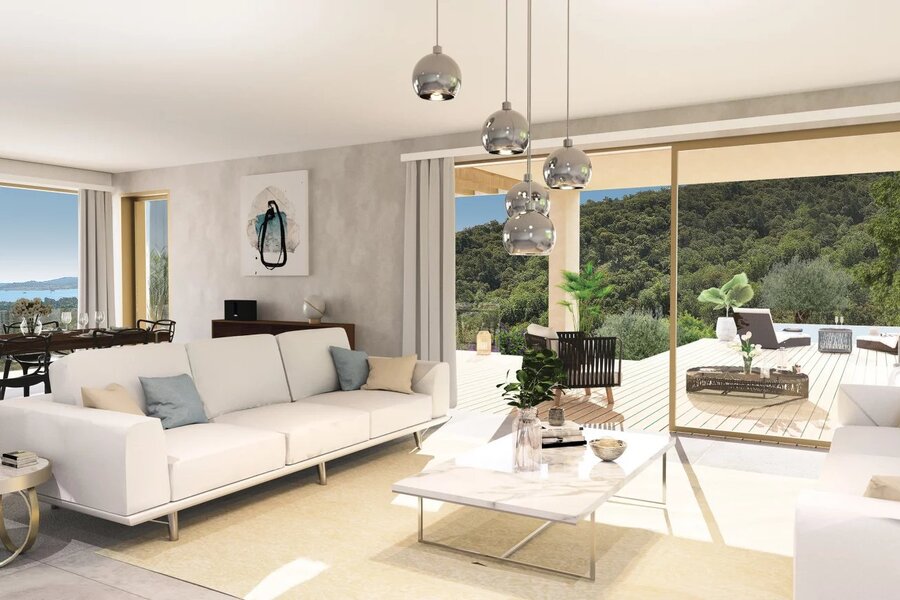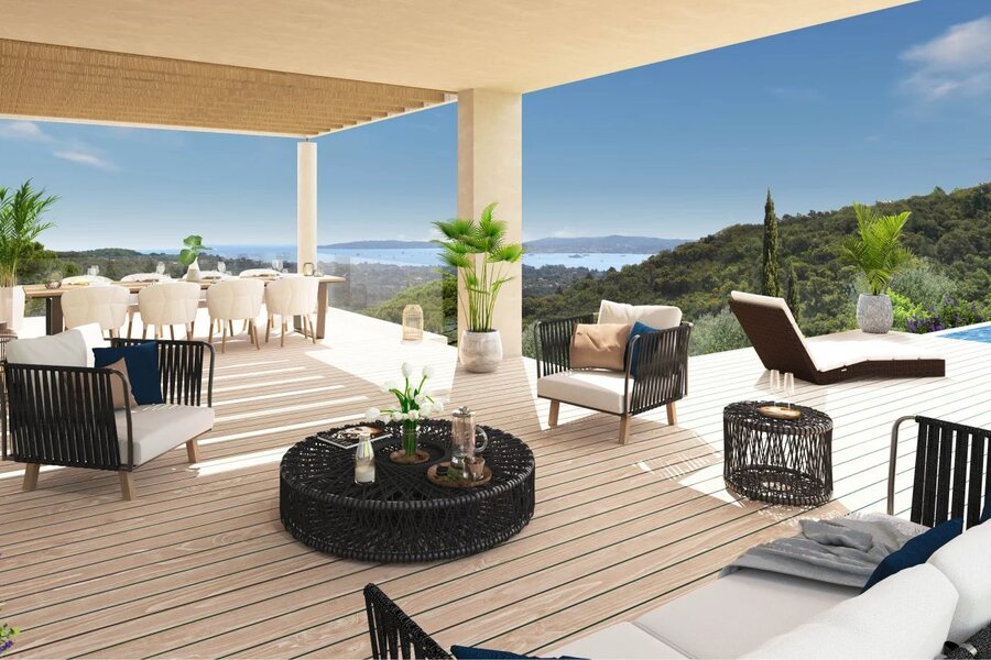 3 New prestigious villas in a sought-after area, located within the private estate of Avelan, on the hills of Grimaud, overlooking the sea and the Gulf of Saint Tropez.
