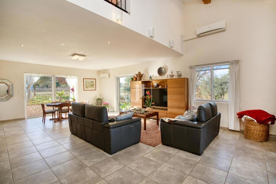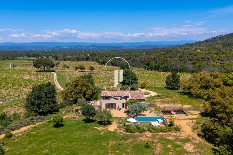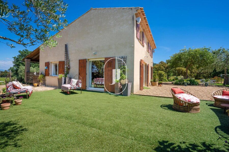 Charming property surrounded by vines for sale in La Garde Freinet by our estate agency in Grimaud. Set in one hectare of land, this pretty two-storey house comprises a large, bright, high-ceilinged living room on the ground floor, complete with fireplace, semi-open fitted kitchen, utility room and guest toilet.