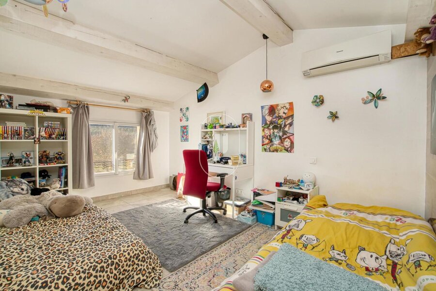 The ground floor also houses two bedrooms: the first with a full bathroom, the second with a shower room and a mezzanine. Upstairs, there are two further spacious bedrooms, a shower room and a mezzanine.