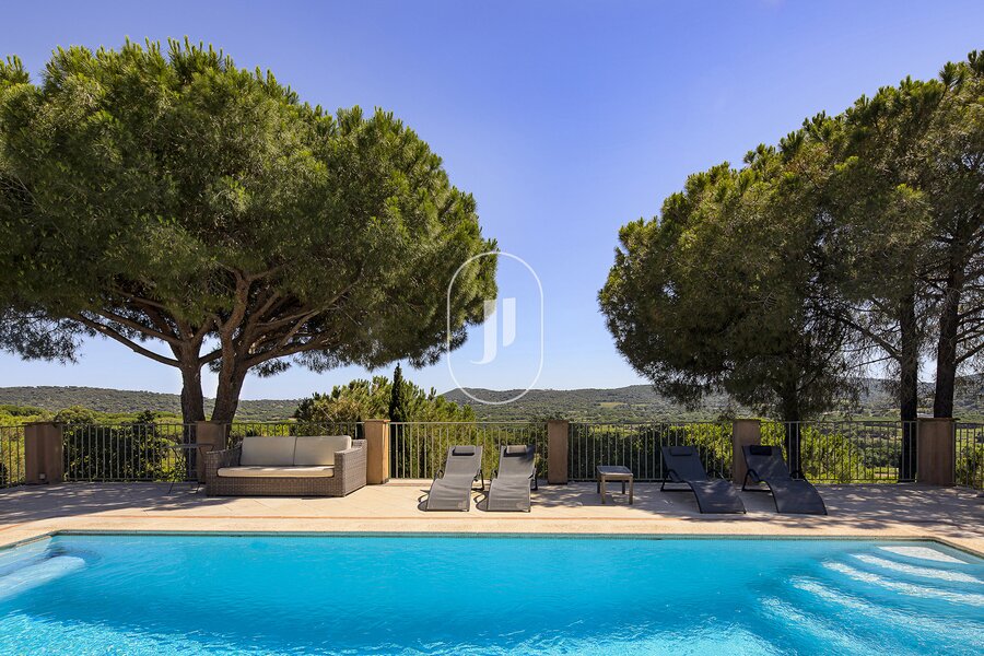 Provençal villa with panoramic view for sale in the Ramatuelle countryside.