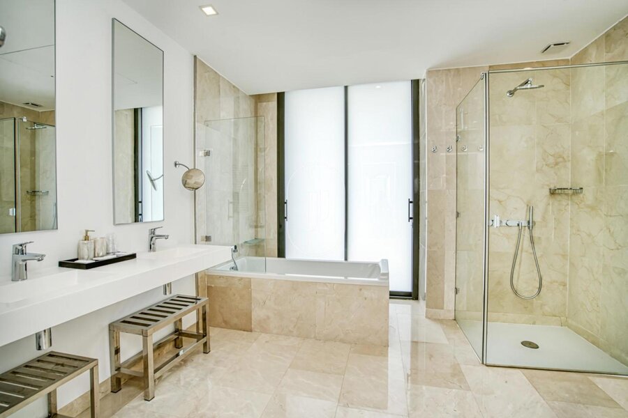 After moving in, you'll be able to do everything on foot or by bike thanks to the dedicated pedestrian/cycle provision along the coast. This lift-accessible duplex apartment comprises an entrance hall, a huge (120 sqm) living room, a kitchen and five bedrooms, each with bath/shower room. The terraces (133 sqm and 248 sqm) provide seclusion and privacy.