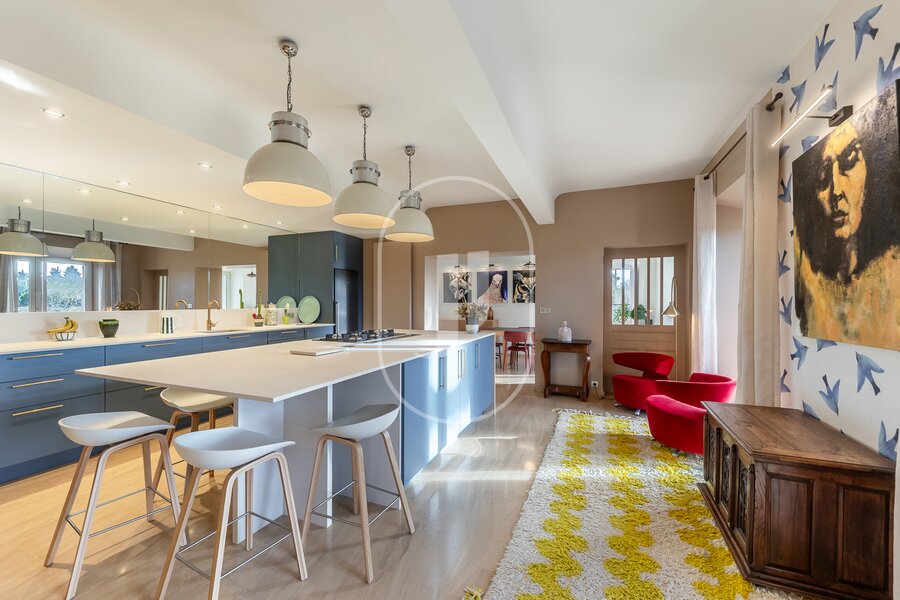 With around 550 m², this bastide boasts generous, light-filled rooms, enhanced by the finest materials and meticulous finishing touches. At the heart of the house is a living room with a fireplace, a spacious, recently fitted kitchen equipped with the latest appliances, a real asset for lovers of good food and conviviality, and a cosy dining room. A utility room, a laundry room and a garage complete this level for optimum day-to-day comfort.