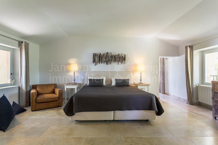 Outside, the enchanting setting invites you to relax, with a majestic plane tree typical of Provence at the heart of carefully landscaped grounds. There's a bowling green, a 10.5 x 5 infinity pool and a covered terrace, perfect for relaxing and socialising. A few steps away, you'll appreciate this beautiful annexe with its fitted kitchen and cosy living area, complete with a shower room and WC. A vast room can be used as a large bedroom or workshop, as you wish.