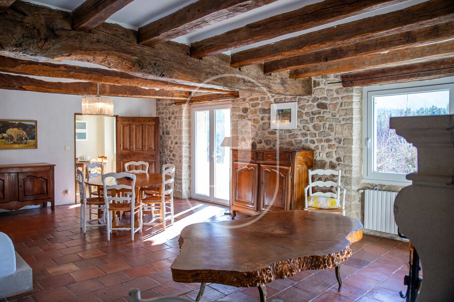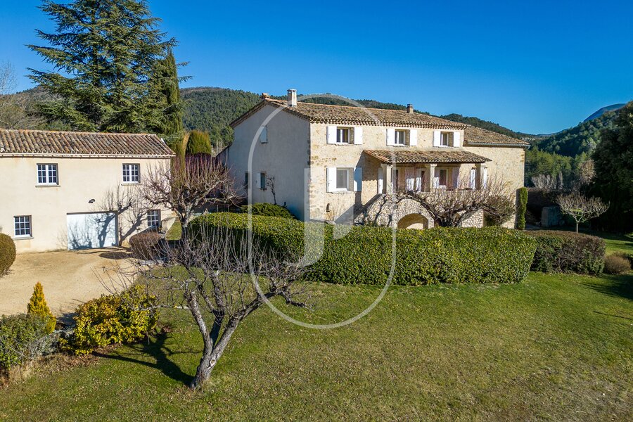 Magnificent property for sale near the Toulourenc Valley – Panoramic views and Provençal charm. This exceptional Provençal stone residence of approximately 280 m², nestled on a plot of about 21 hectares in a preserved natural environment embellished by a water spring, offers breathtaking panoramic views and a south-facing exposure.