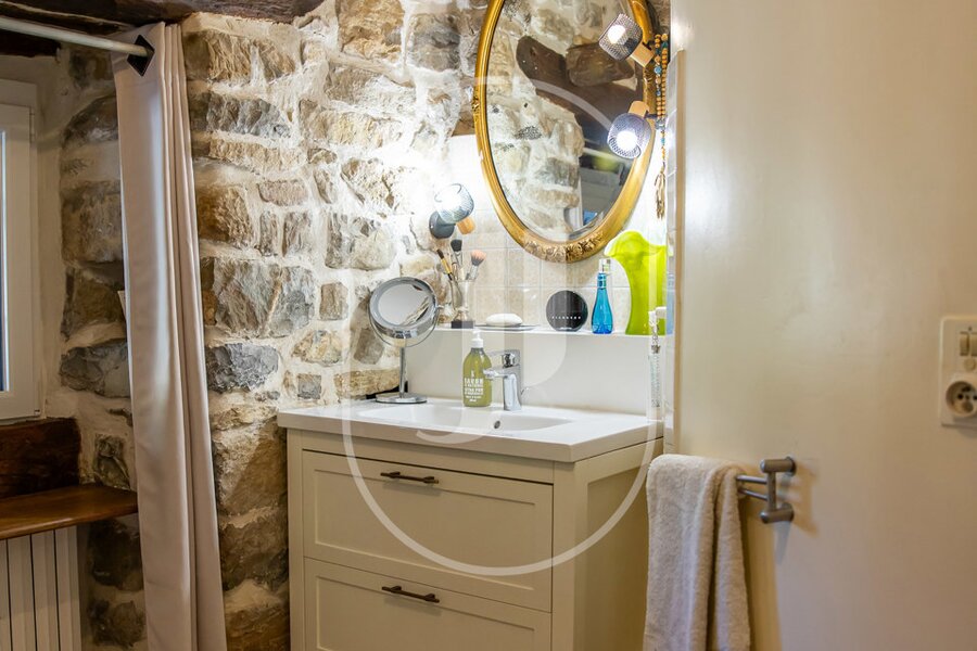 Dwelling 2 is located to the west. Ground floor: a large covered outdoor gallery, a country-style kitchen opening onto a spacious dining room with a fireplace, living room, pantry (which can be transformed into an extension of the living room). On the 1st floor: a bedroom, WC, bathroom as well as two additional bedrooms and a master bedroom with a private shower room.