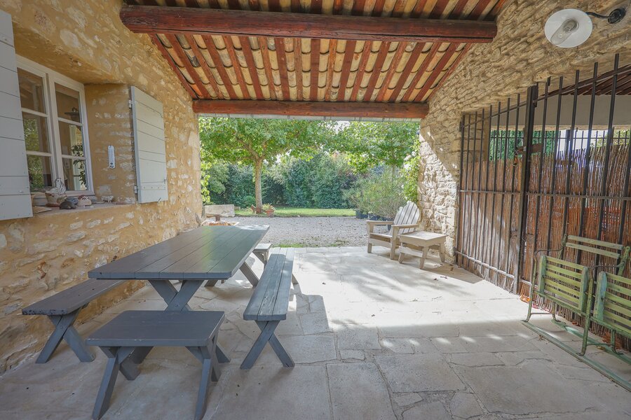 In een rustige omgeving, aan de ingang van een charmant gehucht op enkele kilometers van het gegeerde dorp Roussillon, belichaamt deze prachtige stenen bastide de authenticiteit en charme van de Luberon.