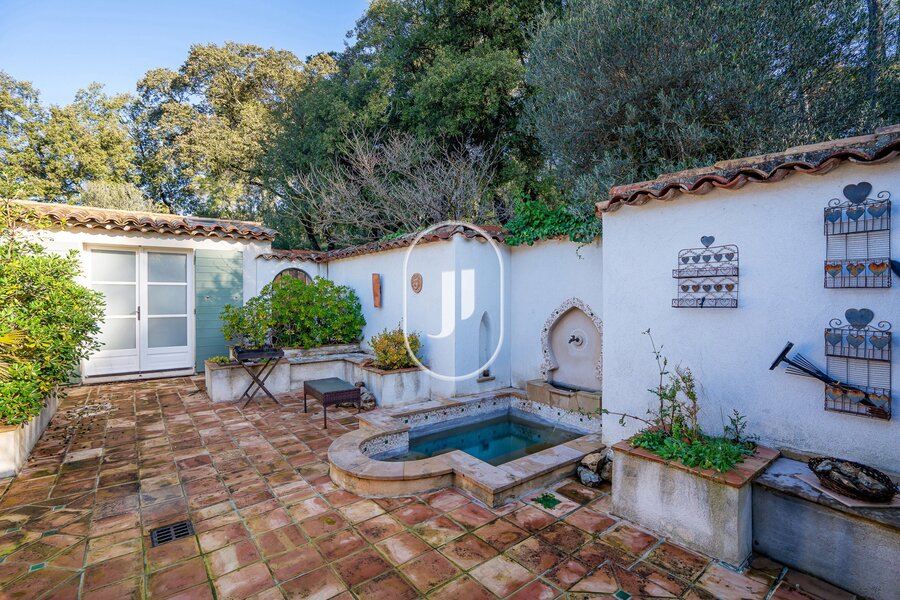 The property enjoys panoramic views over the hills, forest and vineyards. For nature lovers, this exceptional setting is close to the village of Lorgues. This charming Provencal village is very popular with foreigners, both for its geographical location, just 45 minutes from Saint Tropez, and for its typical, well-known market.