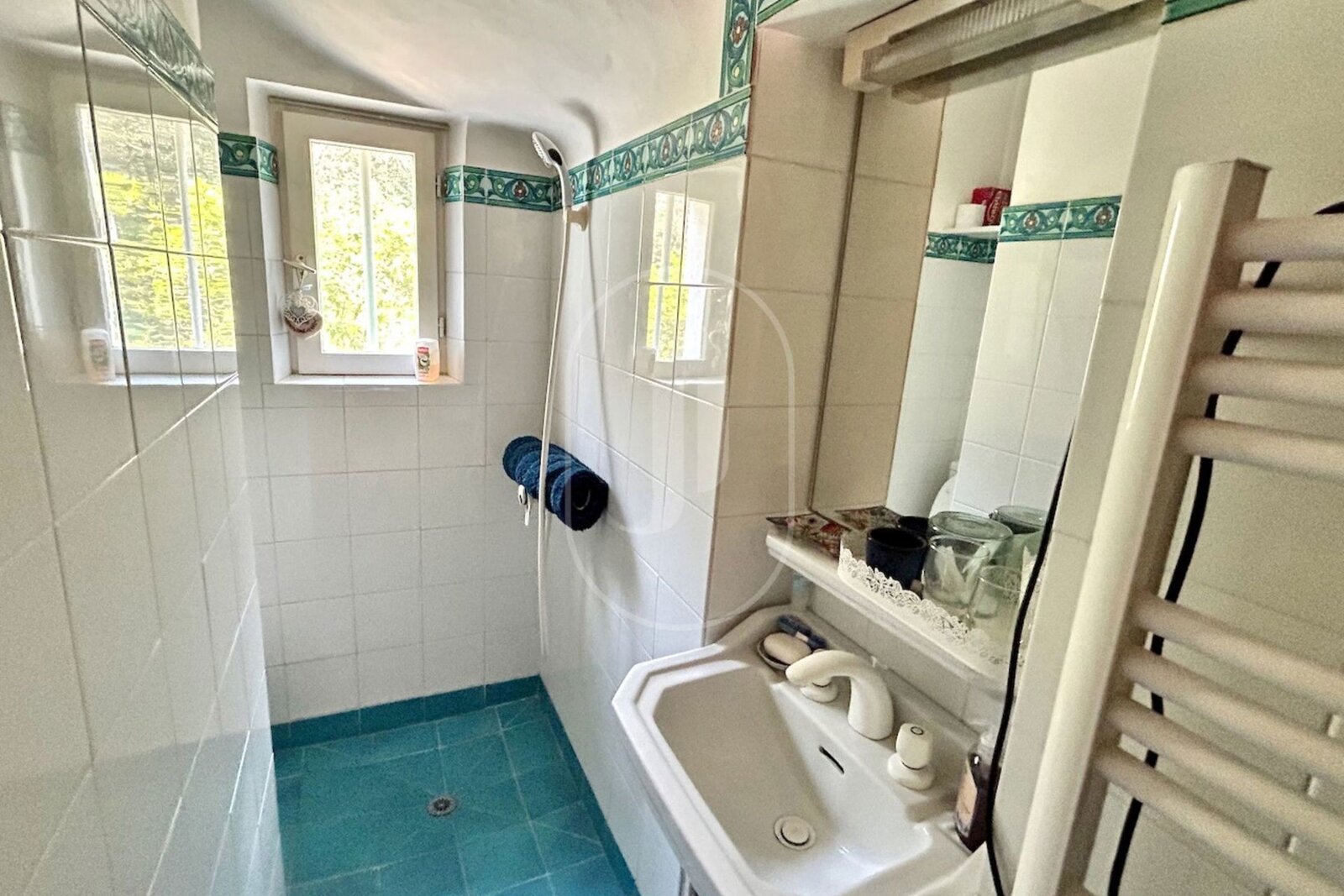 In the annex and in a green setting, a small house comprising a living room or bedroom with kitchen, and a bathroom with wc. The windows are double glazed, terracotta floors, heating with electric radiators.