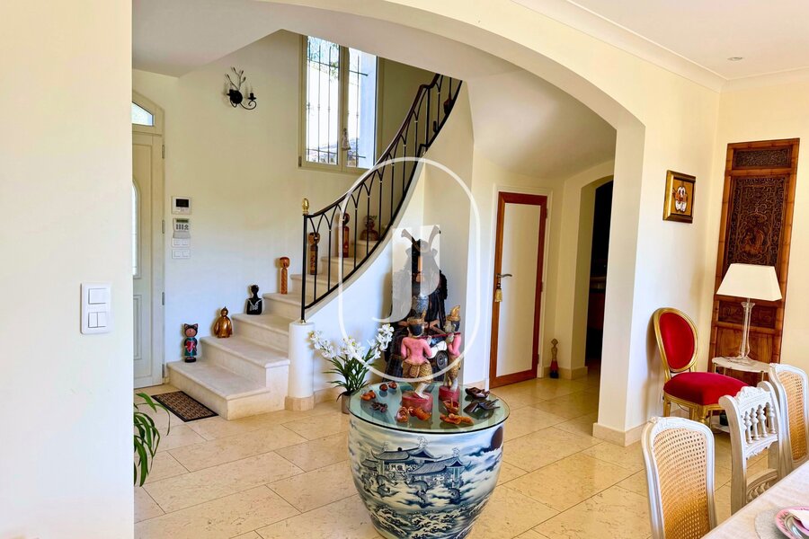 Upstairs, there are three bedrooms, each with its own en-suite bathroom. The house is further enhanced by an independent 21 m² studio and an entertainment room with fireplace.