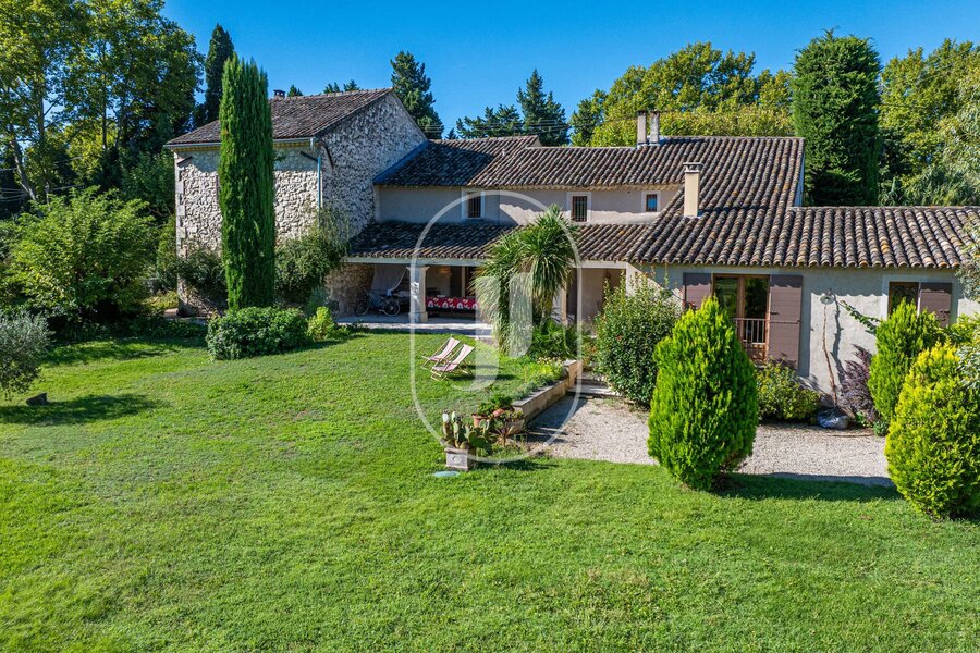 This characterful farmhouse, dating from the 19th century and fully renovated, consists of two distinct yet connected dwellings: the main Mas and a Mazet (built in 2008). The whole property offers a beautiful architectural harmony, blending Provençal tradition with modern features.