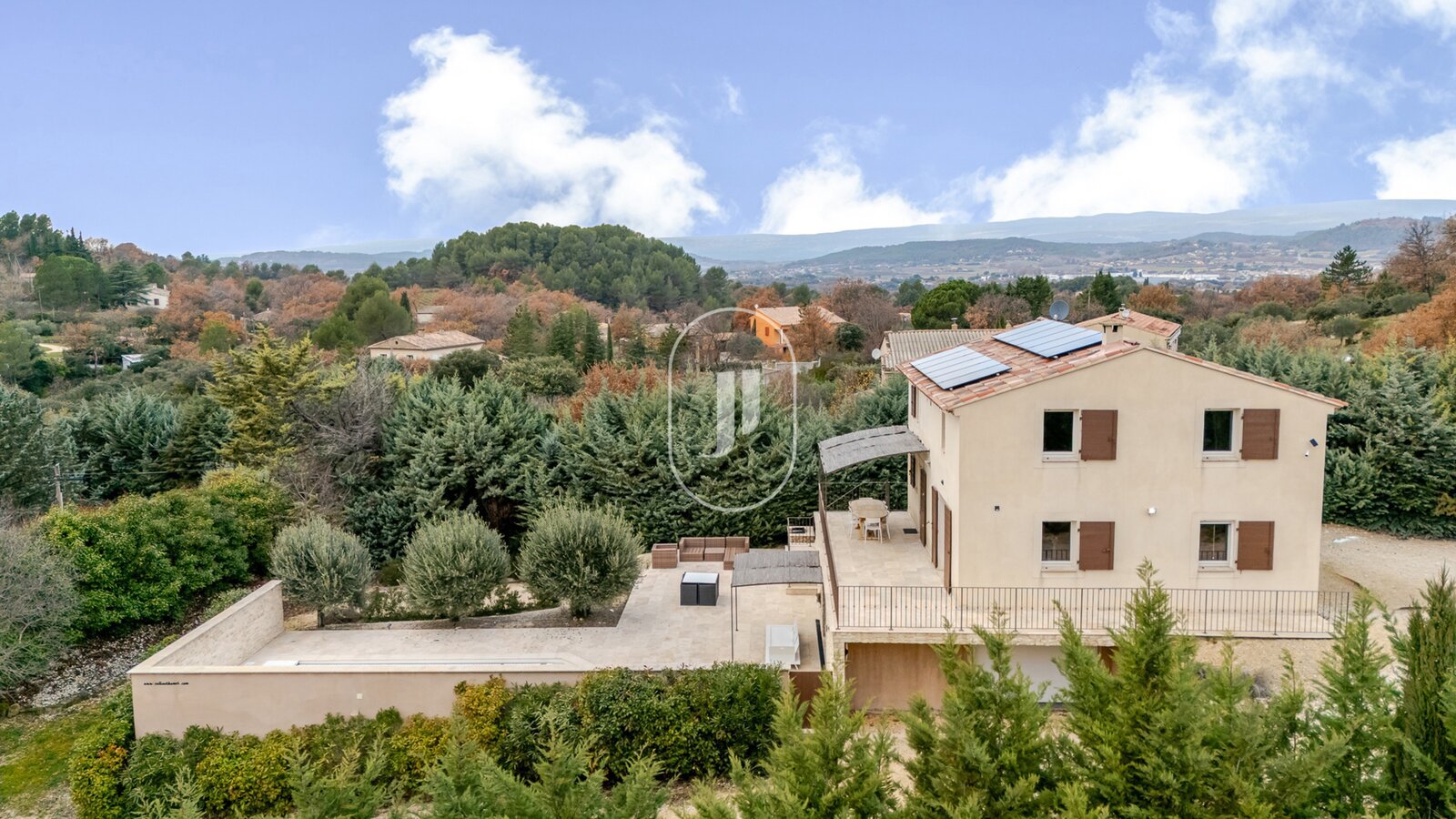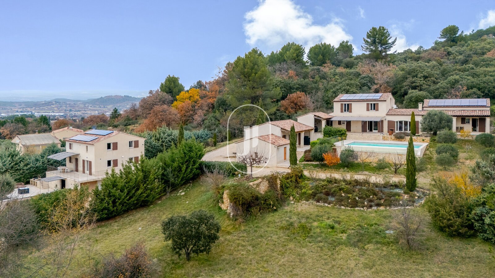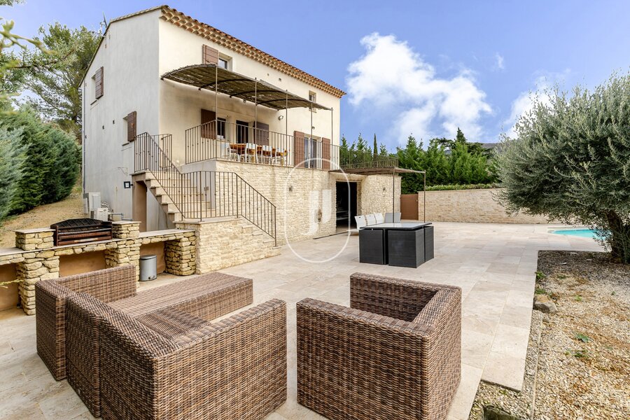 Located near Apt, in the heart of the countryside and enjoying a dominant position, this property comprising two villas offers a privileged living environment combining peace, open views and a preserved natural setting, set on a plot of nearly 8,500 m².