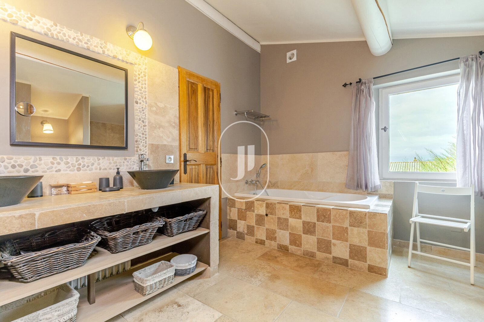 The outdoor areas are a real asset. The landscaped grounds include two heated swimming pools, one treated with chlorine and the other with salt, both perfectly integrated into their surroundings.
