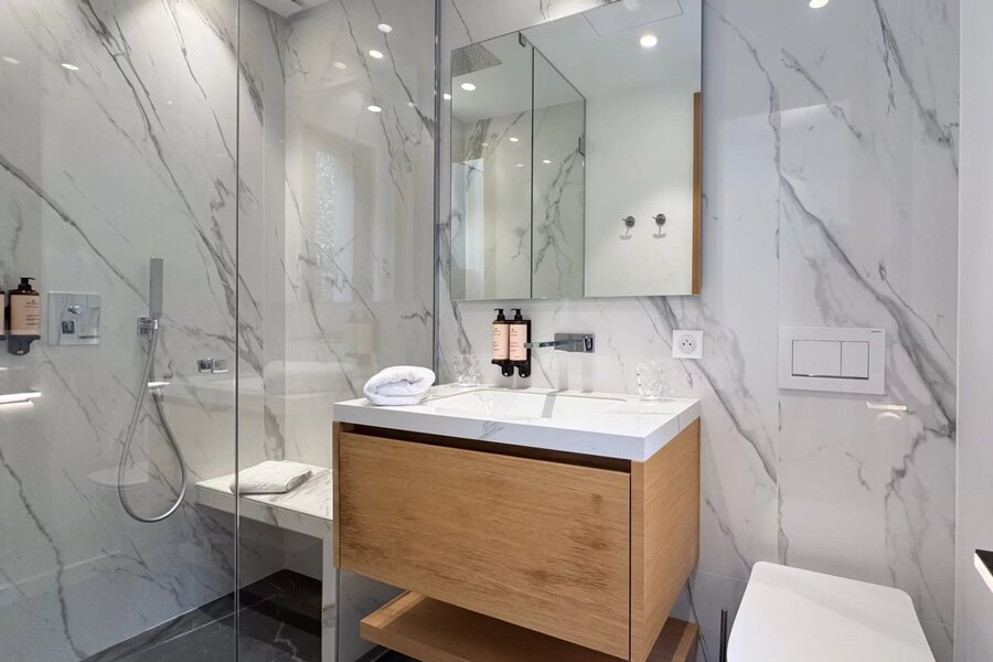 On the garden level, exclusive amenities complete the residence: a private screening room and a dedicated wellness and treatment area designed for optimal comfort.