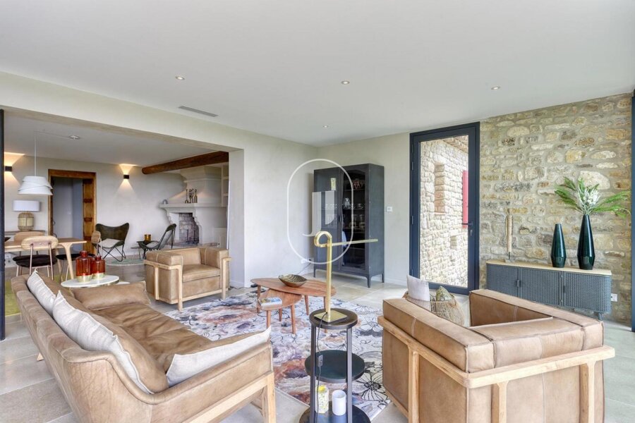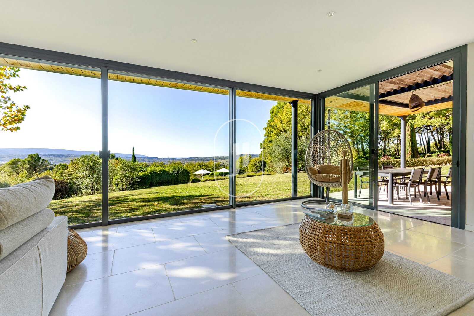 Prachtige eigendom te koop, heel rustig en dominant gelegen op een terrasvormig grondstuk van meer dan 3 ha, waarvan een deel is omgetoverd tot een schitterende landschapstuin met een hondertal olijfbomen, vanzelfsprekend met een aangenaam verwarmd zwembad. Het panoramisch uitzicht op de Luberon en zijn pittoreske dorpjes (Lacoste, Goult, Gordes...) is gewoonweg adembenemend. Het geheel bestaat uit een hoofdhuis, een gastenverblijf en enkele bijgebouwtjes. Het hoofdhuis werd met veel zorg volledig gerenoveerd in 2020 met een immense woonkameer met open haard, ingerichte keuken, bureelruimte, wasruimte, 4 slaapkamers en 4 bad/douchekamers. . Het gastenverblijf heeft een grote woonkamer met open keuken, 2 slaapkamers en een badkamer met bad en douche. Bij de woning horen tevens enkele bijgebouwtjes zoals een ruim overdekt terras, carport voor 2 wagens, een technisch lokaal en een tuinhok. Het huis ligt in een idyllisch kader met volledige privacy, op 5 min van het dorp van Bonnieux.