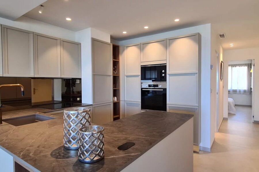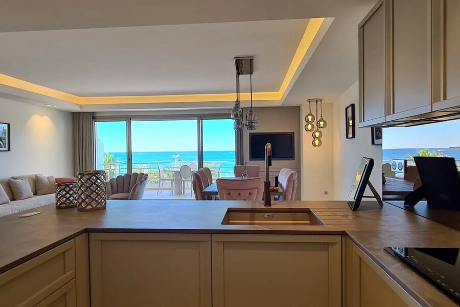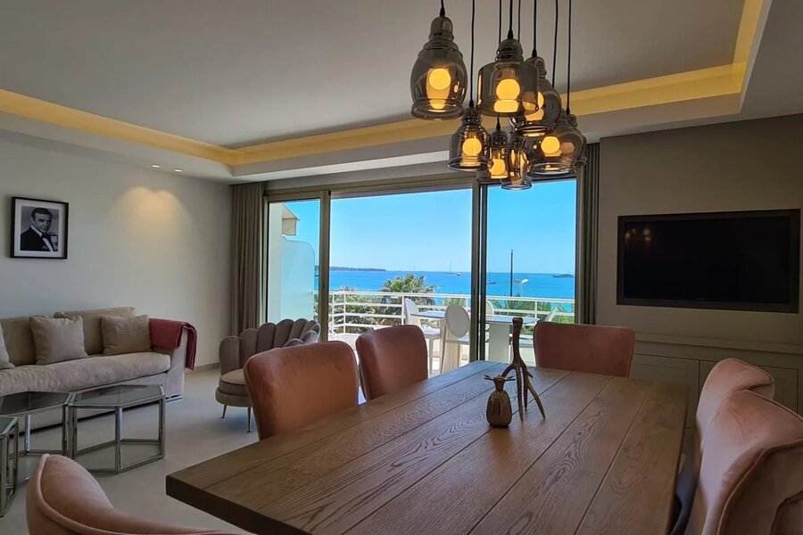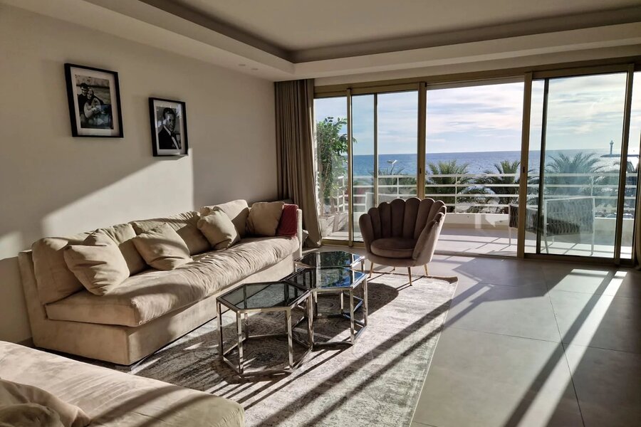Appartement à vendre avec deux chambres et deux salles de bains. Une cuisine ouverte et une vue panoramique magnifique sur la mer. L'appartement est situé sur la célèbre La Croisette.