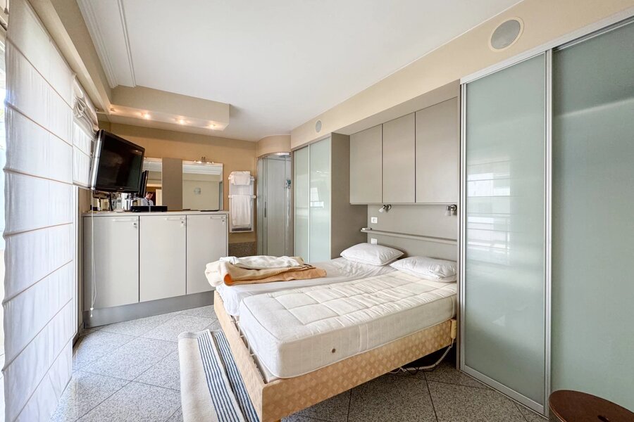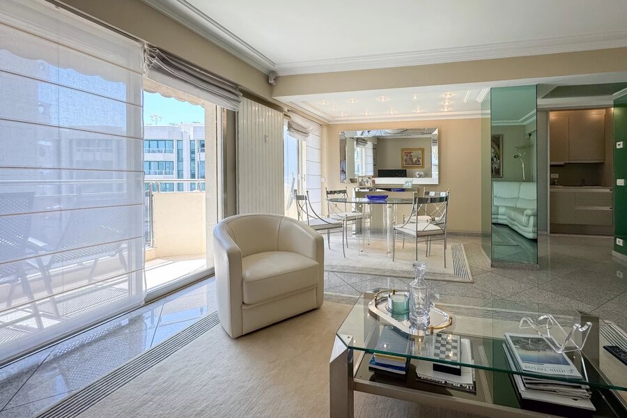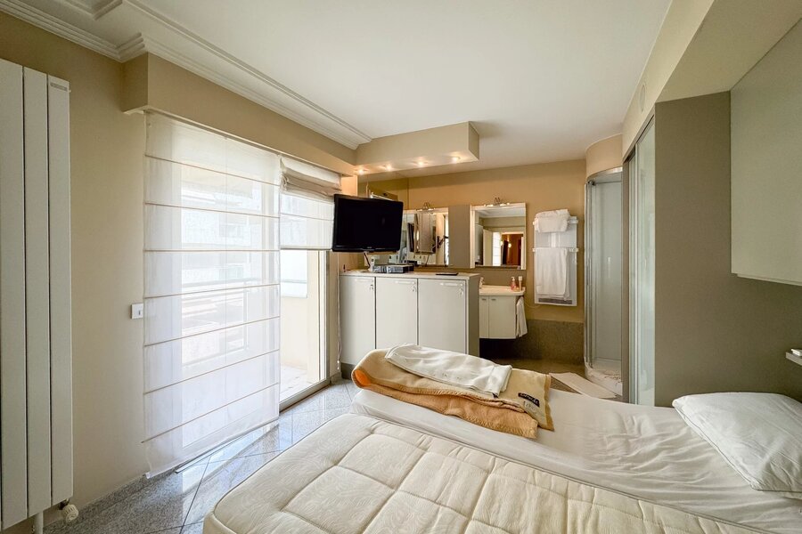 Découvrez ce magnifique appartement situé dans la prestigieuse résidence *Le Palais Lumière* à Cannes. Cet appartement raffiné dispose d'une grande chambre spacieuse et offre des finitions haut de gamme.