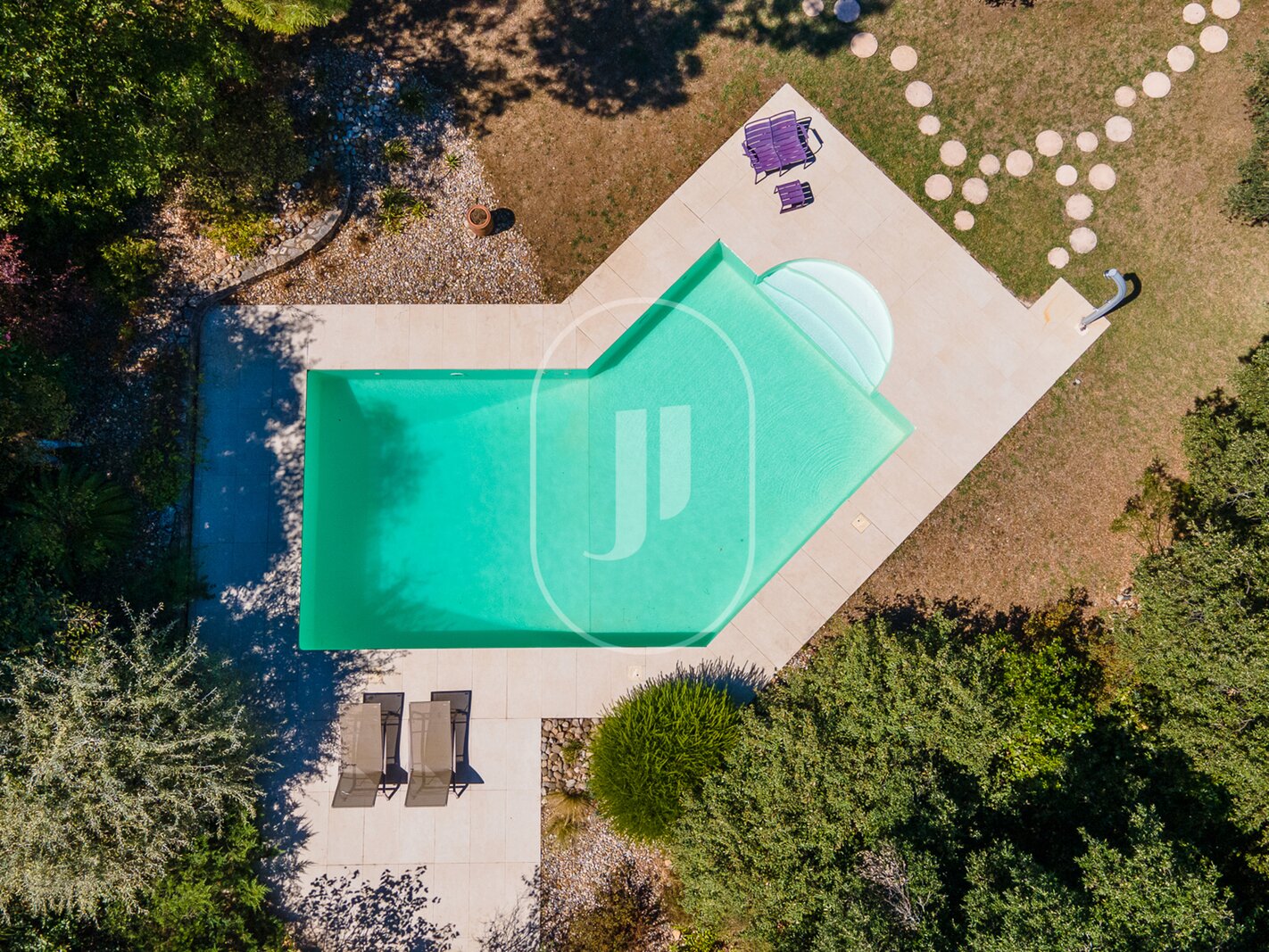 Het huis ligt op een omheind en bebost perceel van circa 4.800 m² in een rustige en beschermde omgeving. Uiteraard is er ook een prachtig zwembad van 11 x 5 meter, een poolhouse met barbecue en ruime terrassen die uitnodigen om ten volle te genieten van zonnige dagen en zomerse avonden.