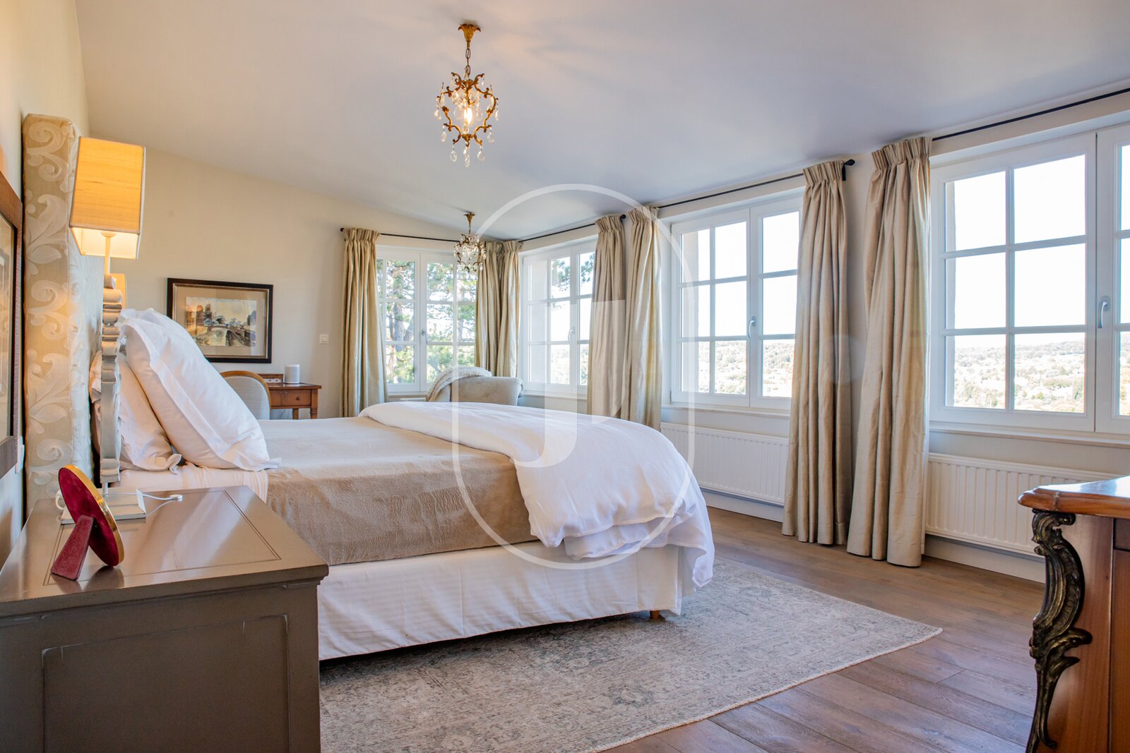 Op de top van de bovenstad ligt dit uitzonderlijke huis van 270 m² op een zeldzame locatie, rustige en lichte ligging, op enkele stappen van winkels, met een prachtig panoramisch uitzicht over het dal en de omliggende heuvels.