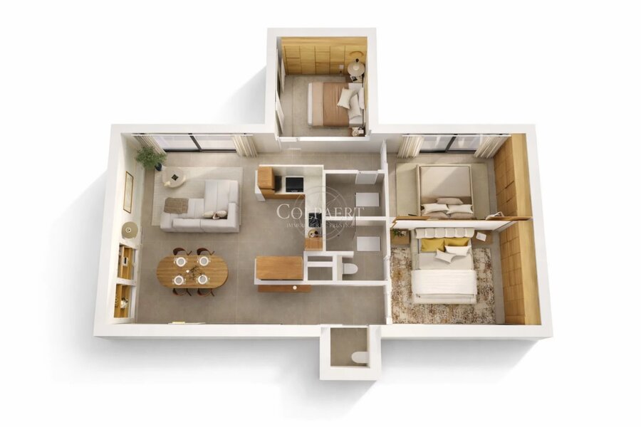 Appartement B1.2 – Situé en rez-de-jardin, cet appartement de 85,26 m² propose 3 chambres, 2 salles de douche et 2 terrasses. L’équilibre parfait entre fonctionnalité, charme méditerranéen et luxe exclusif.