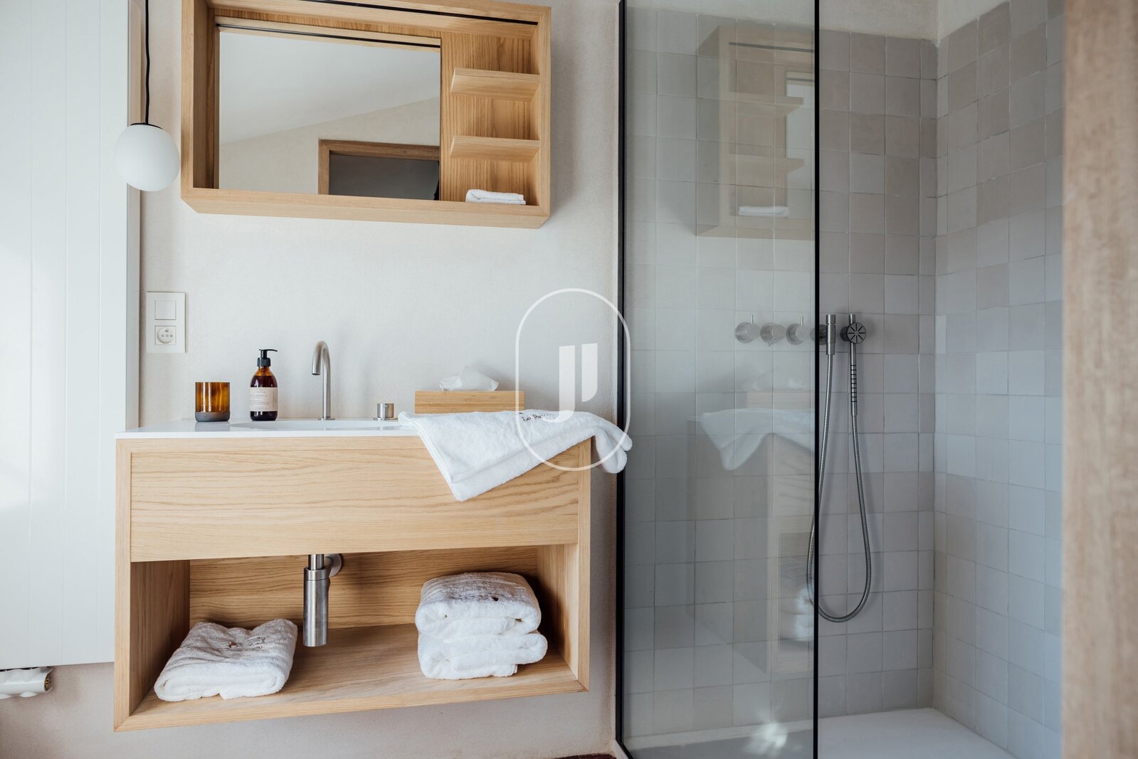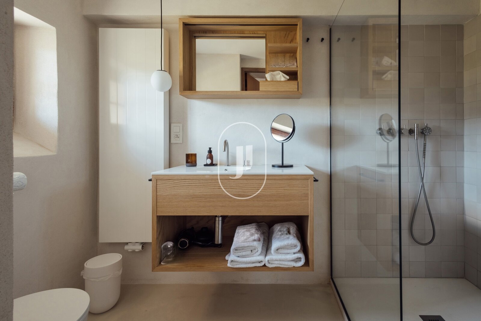 Binnen vallen de royale ruimtes en hoogwaardige materialen direct op. De lichte leefruimte opent naar verschillende ontspanningsruimtes en een gezellige keuken, aangevuld met een bijkeuken, wasruimte en linnenkamer. De bastide beschikt over vijf slaapkamers met eigen badkamer, waarvan één op de begane grond, wat privacy en comfort garandeert voor zowel familie als gasten. Een veelzijdig appartement vervolledigt dit prachtige geheel.