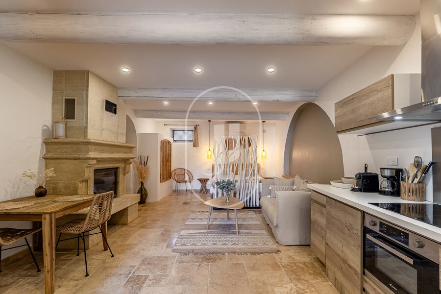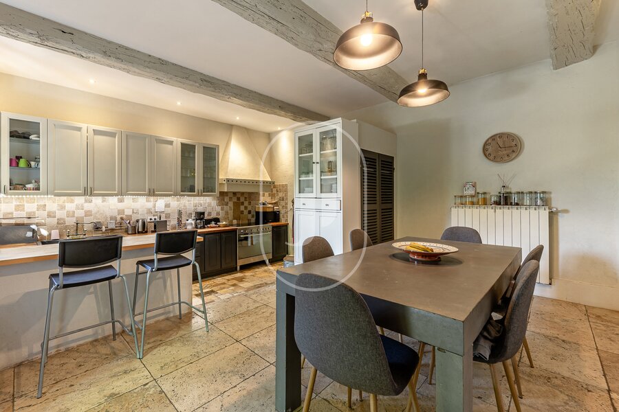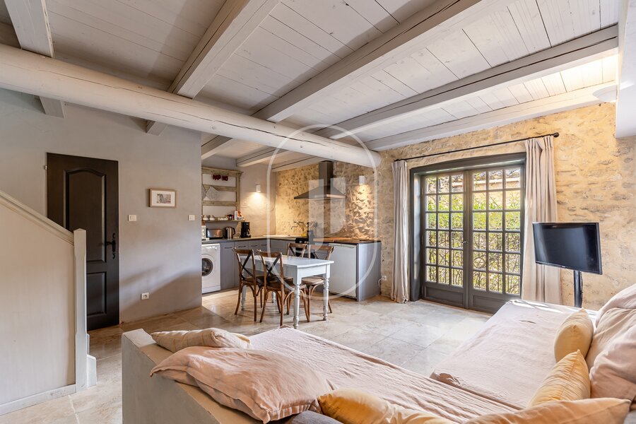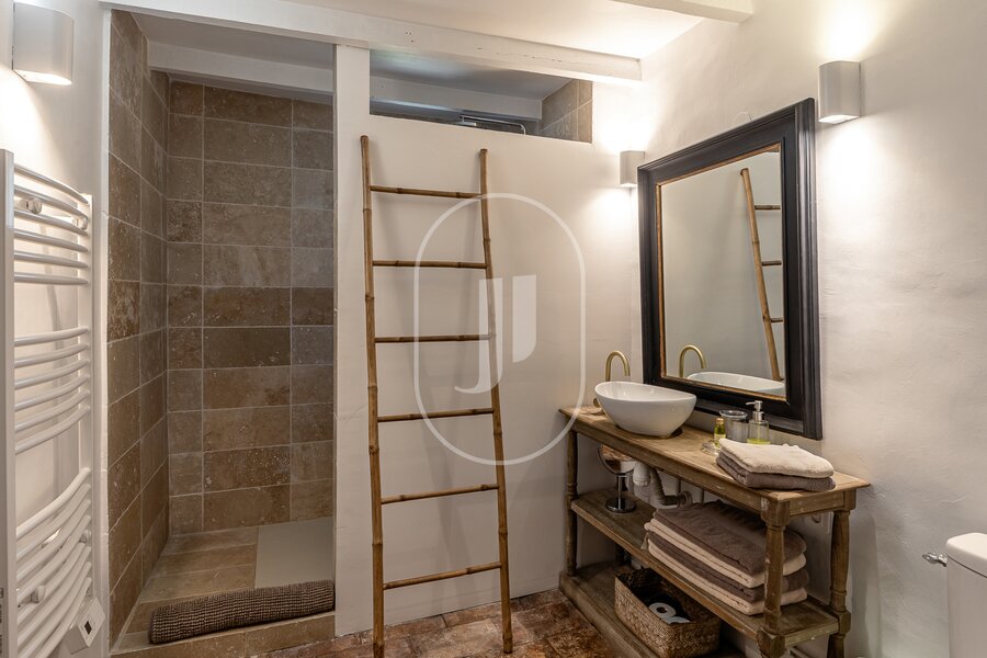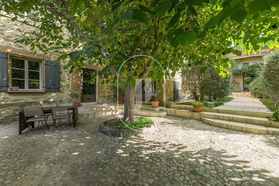 Buiten wordt u betoverd door een idyllische omgeving: een ruim zwembad van 6 x 12 m, een mediterrane tuin met fruitbomen, een schaduwrijk terras, een stenen binnenplaats en olijfbomen — de perfecte plek om te genieten van het Provençaalse leven.