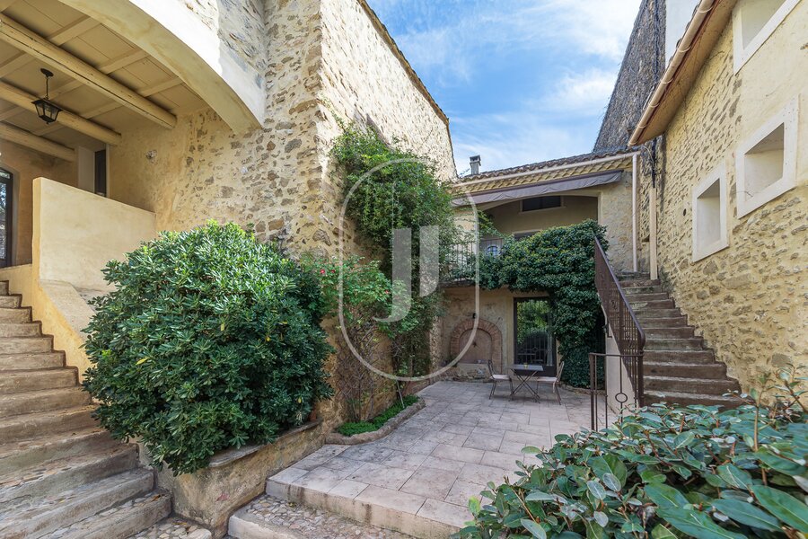 Dicht bij Beaumes-de-Venise, ontdek dit prachtige stenen pand uit de 19e eeuw, in absolute rust, met een totale oppervlakte van ongeveer 534 m², volledig en smaakvol gerenoveerd, gelegen op een perceel van bijna 6.900 m².