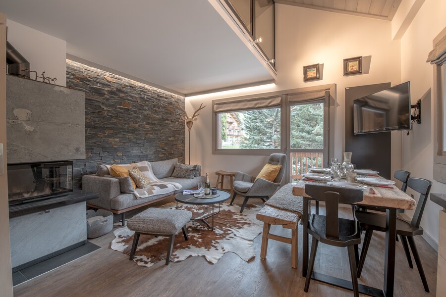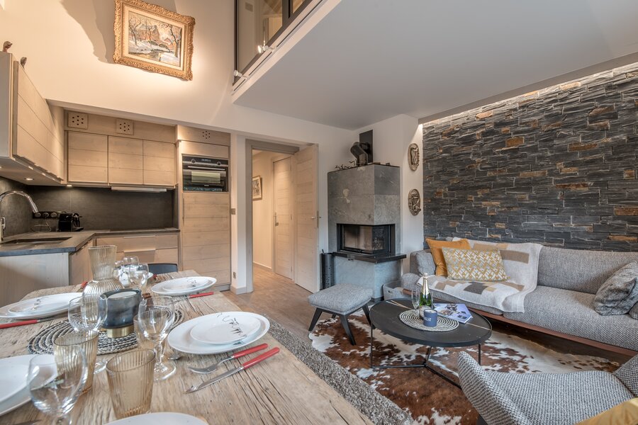 En bordure de piste et à quelques mètres des commerces du centre station, extraordinaire appartement duplex en excellent état présentant de très belles prestations. Il est composé d'une lumineuse pièce de vie d'angle avec cheminée, cuisine ouverte donnant sur le coin repas. Côté nuit, Il est composé de deux chambres + un dortoir soupente. Cet appartement est baigné de lumière grâce à sa double exposition Sud et Ouest.