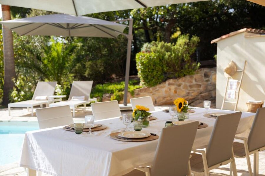 In het zonnige Zuid-Frankrijk leef je vooral buiten. Daar is deze magnifieke villa helemaal op voorzien: een privézwembad, voldoende ligbedden, een buitendouche, een zomerkeuken en goede loungeset - met TV - bij het zwembad. Deze villa biedt het allemaal.