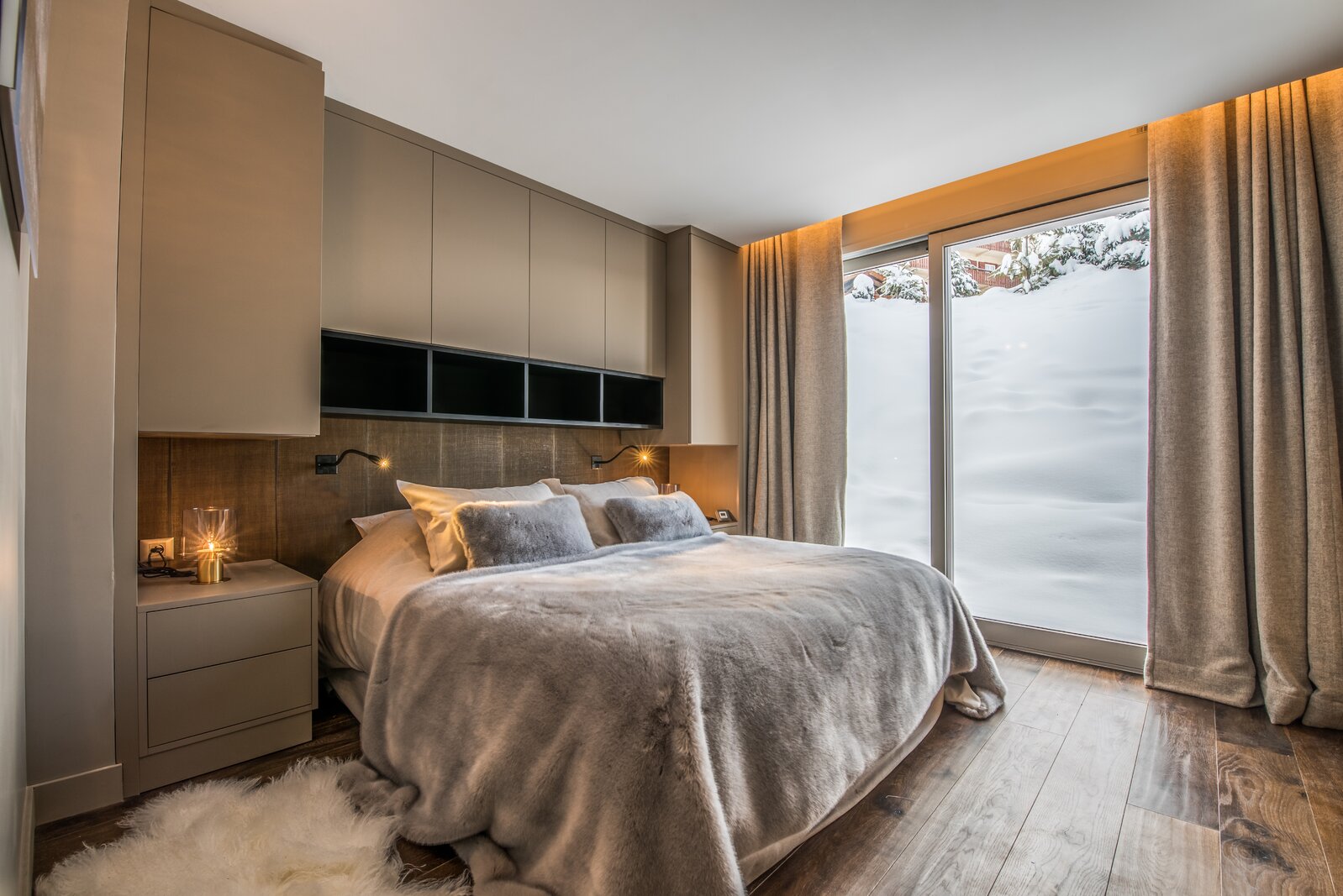 L'écriture intérieure conjugue volumes maîtrisés, matériaux chaleureux et relation constante au paysage, dans une lecture cohérente de l'habitat alpin contemporain.