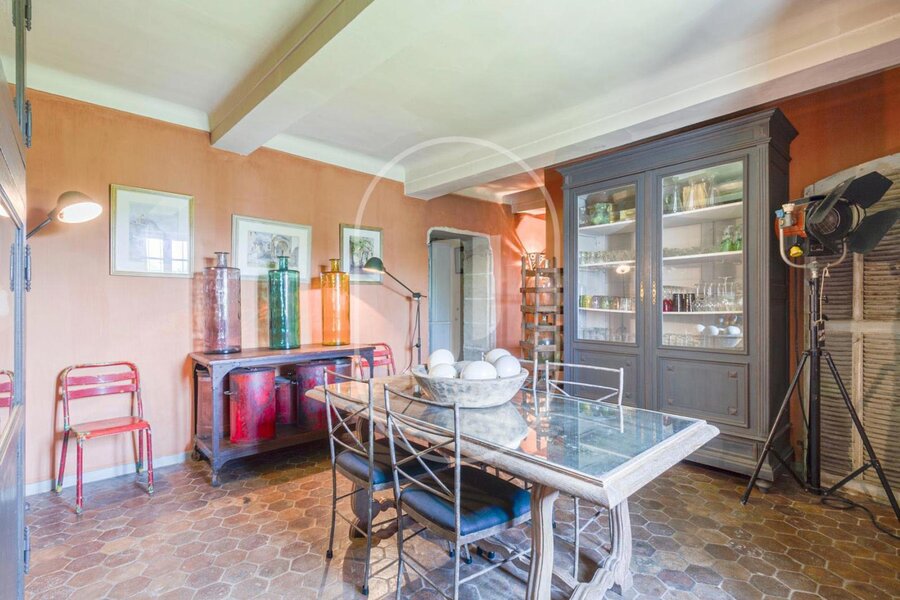 Het hoofdhuis verwelkomt je met elegantie vanaf de begane grond. Een ruime eetkamer, volledig uitgeruste keuken en bijkeuken, twee salons en een toilet, gevolgd door een kleinere eetkamer, evenals een wasruimte en werkplaats, bieden de perfecte setting voor het ontvangen van gasten.