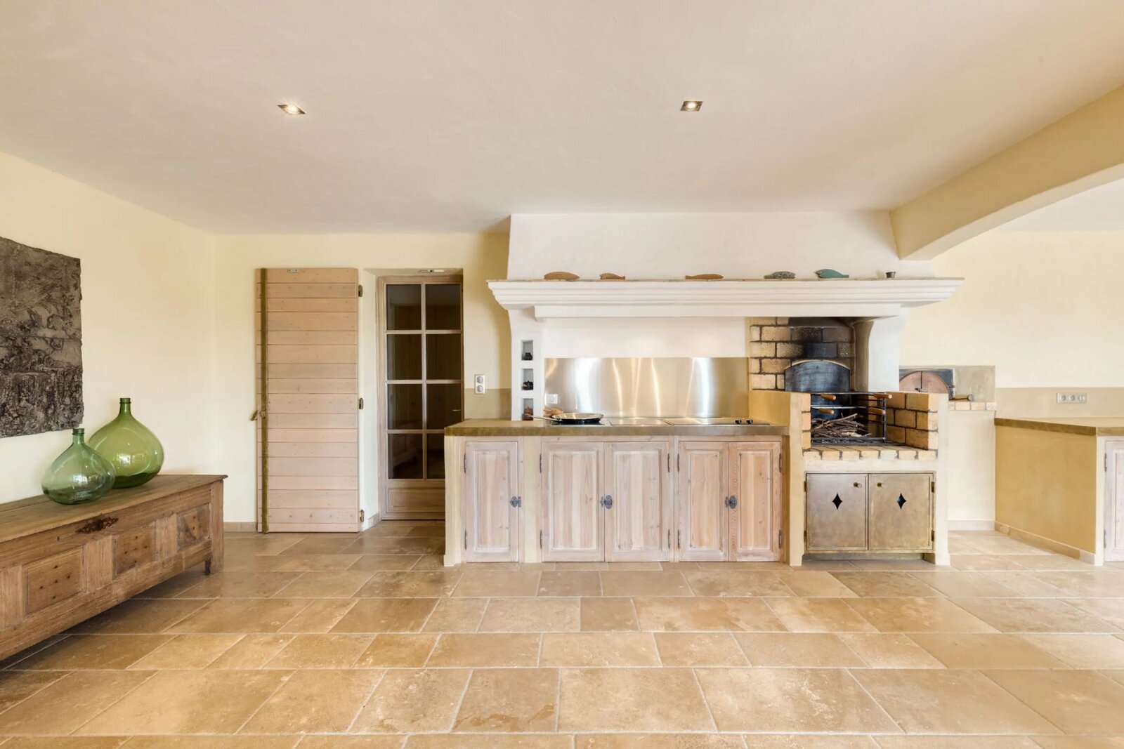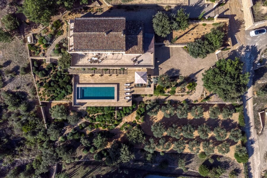Le terrain de 4 214 m² s’articule autour d’une oliveraie restaurée, aménagée en restanques de pierre anciennes, alimentée par une réserve d’eau de pluie discrète et un système d’irrigation entièrement automatisé. L’intimité y est totale : la propriété est entièrement clôturée, sécurisée et bordée d’hectares protégés garantissant une tranquillité durable.