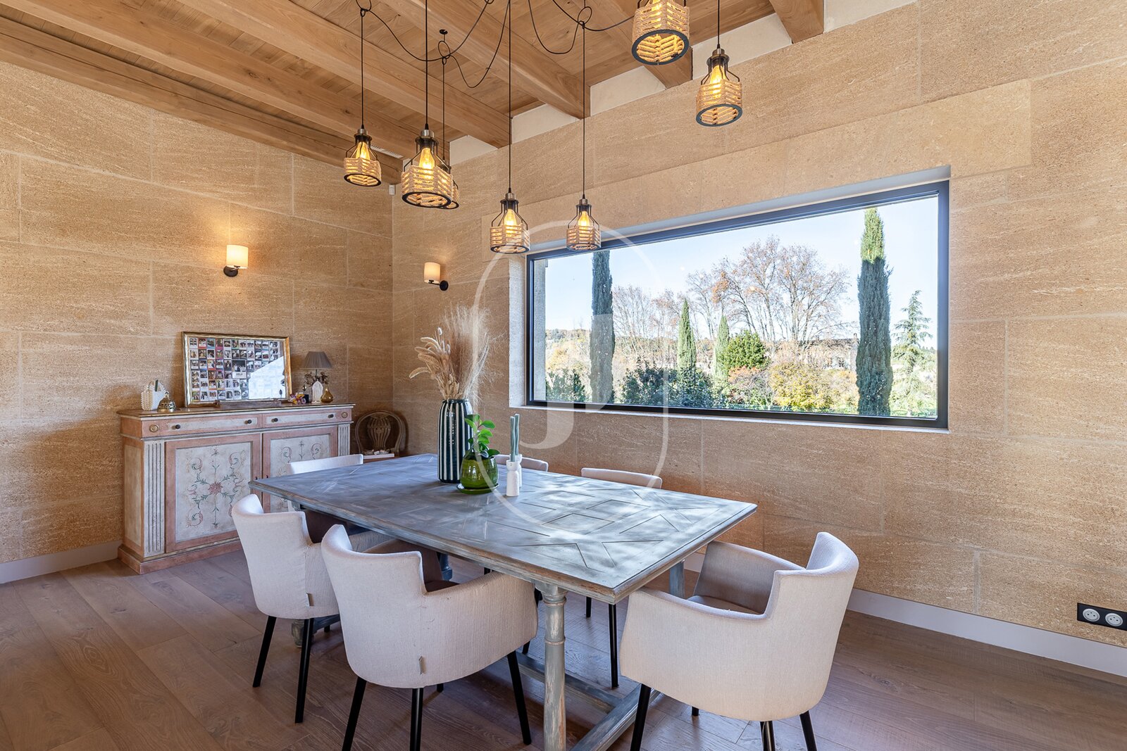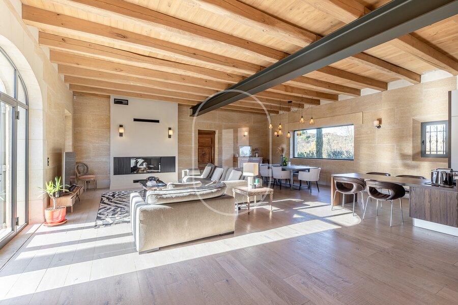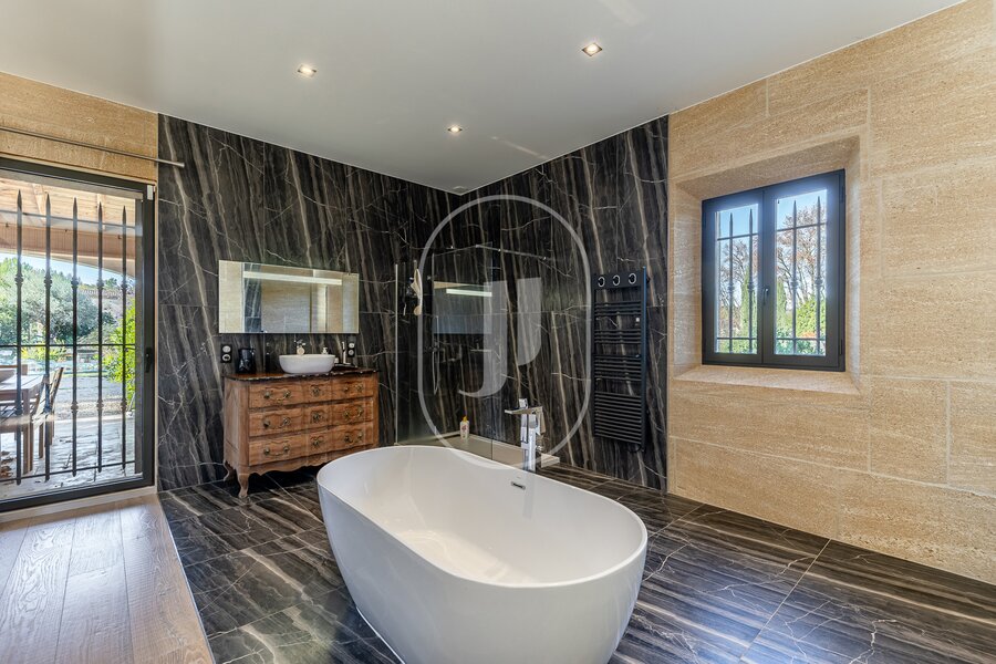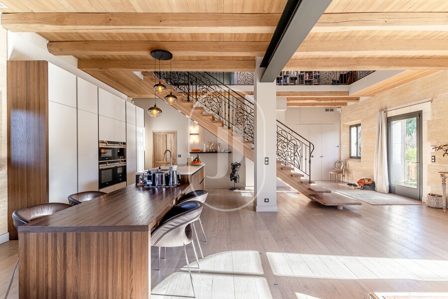 Gebouwd in massieve natuursteen uit de Gard, combineert deze woning authenticiteit, elegantie en hoogwaardige materialen. Ideaal gelegen in een rustige en groene omgeving, biedt dit pand te koop nabij Châteauneuf-du-Pape ongeveer 351 m² aan comfort, licht en perfect ontworpen ruimtes.