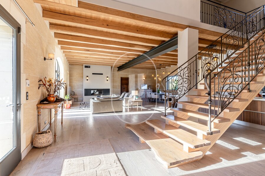 Een majestueuze trap leidt naar de eerste verdieping, waar de slaapverdieping bestaat uit: