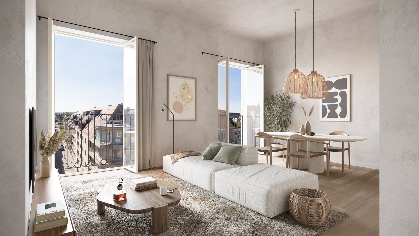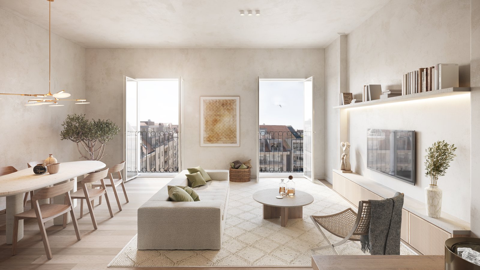 Le nouveau The Grand aura également plusieurs fonctions. Le projet comprend 70 appartements, mais aussi une piscine commune avec des installations de bien-être, un bar, une brasserie, un certain nombre d'espaces commerciaux, ainsi qu'un parking souterrain pouvant accueillir 115 voitures et un abri à vélos pour 248 bicyclettes. Sur les 70 appartements, il y en a encore quelques-uns à vendre, avec des surfaces allant de 50m2 à 240 m2 et des prix de vente à partir de 445 000 €.