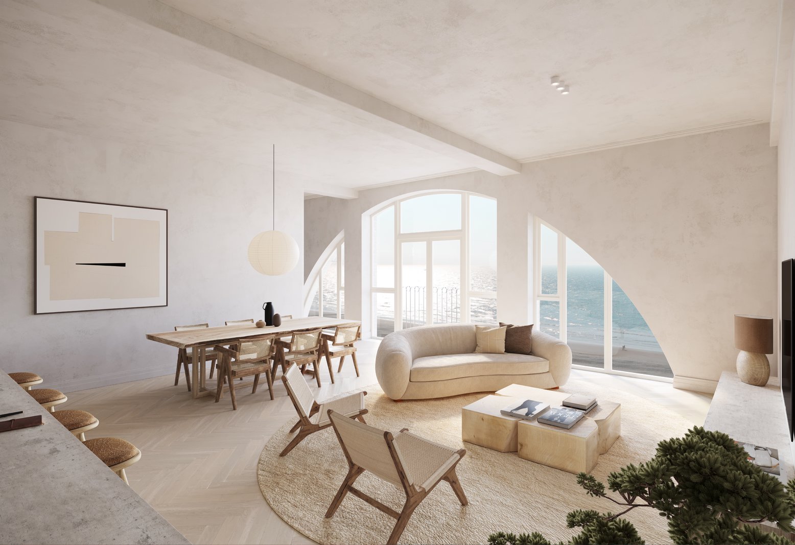 VDD Project Development, promoteur de projets historiques, rénovera entièrement le fier bâtiment de la belle époque en collaboration avec le célèbre cabinet d'architectes londonien David Chipperfield Architects. L'ambition de ce projet de rénovation unique est de rendre au bâtiment sa grandeur et son statut sur la côte de Nieuwpoort. Une grande partie de ce qui reste du bâtiment historique sera soigneusement restaurée, comme le hall d'entrée, les statues et d'autres éléments originaux des façades. D'autres parties, comme les 4 nouveaux étages, la tour emblématique et les dômes, seront restaurées avec une réinterprétation ludique et contemporaine du langage architectural existant, dans le respect du design original. Les plans intérieurs des appartements ont été conçus par Arjaan De Feyter Interiors.